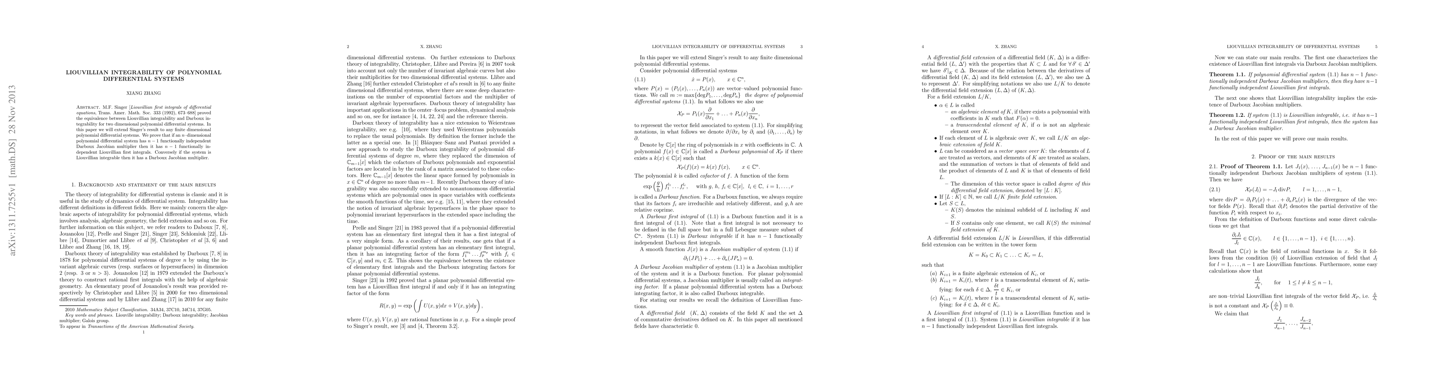 This paper extends Singer's result on Liouvillian integrability to finite dimensional polynomial differential systems, proving that an n-dimensional system with n-1 independent Darboux Jacobian multipliers possesses n-1 independent Liouvillian first integrals. Conversely, it demonstrates that Liouvillian integrability implies the existence of a Darboux Jacobian multiplier.