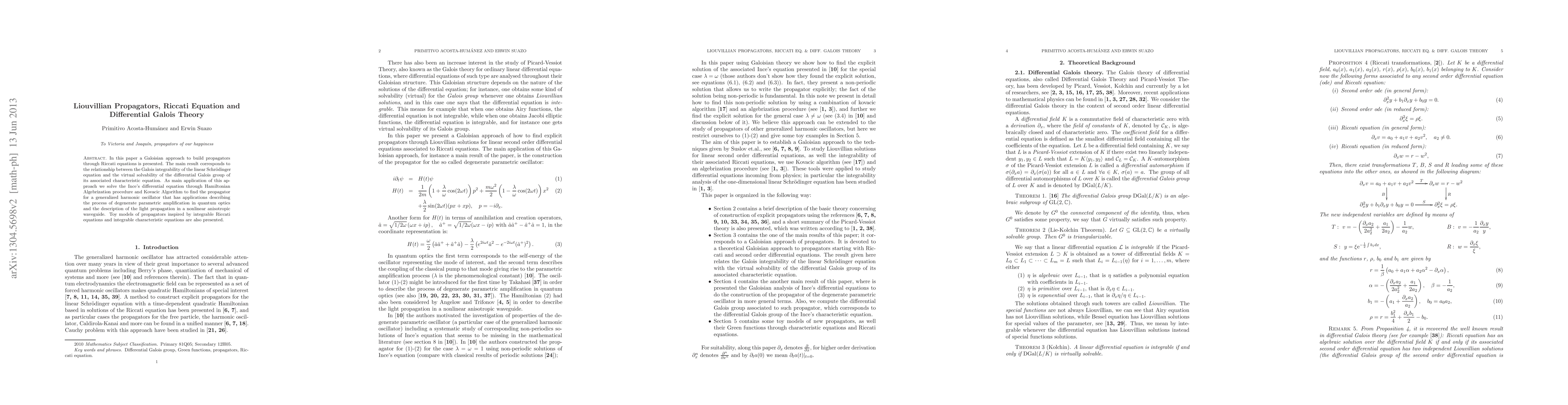 This paper develops a Galoisian method for constructing propagators using Riccati equations and explores the relationship between the Galois integrability of the linear Schrödinger equation and the differential Galois group's virtual solvability. The approach is applied to solve the Ince's differential equation, finding a propagator for a generalized harmonic oscillator with applications in quantum optics and nonlinear waveguides.