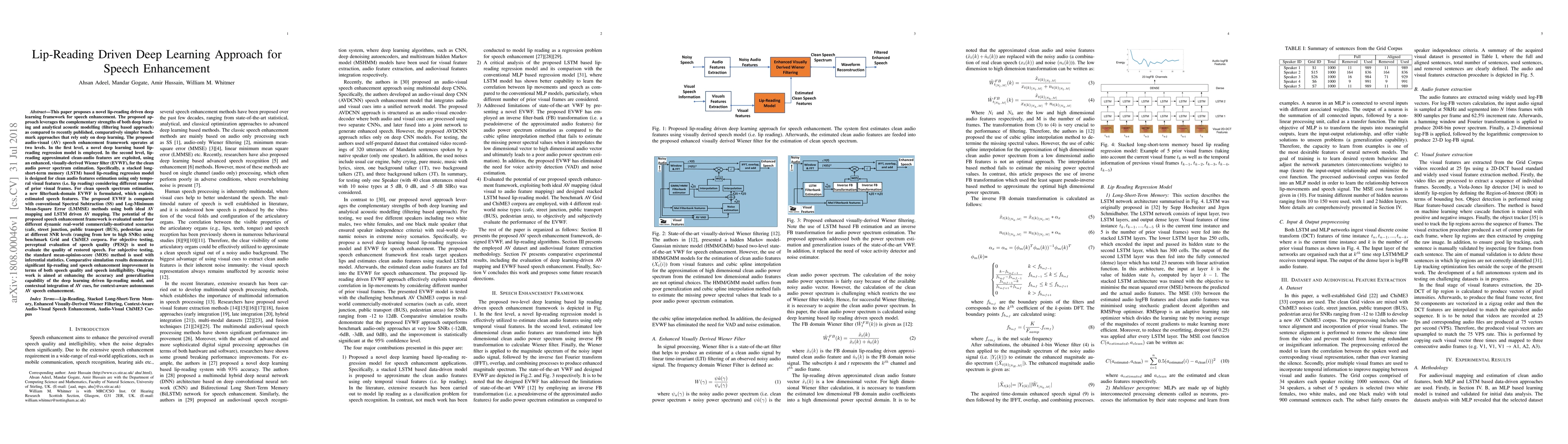 This paper introduces a lip-reading driven deep learning framework for speech enhancement, combining deep learning lip-reading regression with an enhanced visually-derived Wiener filter for improved audio-visual speech quality and intelligibility across various real-world scenarios.