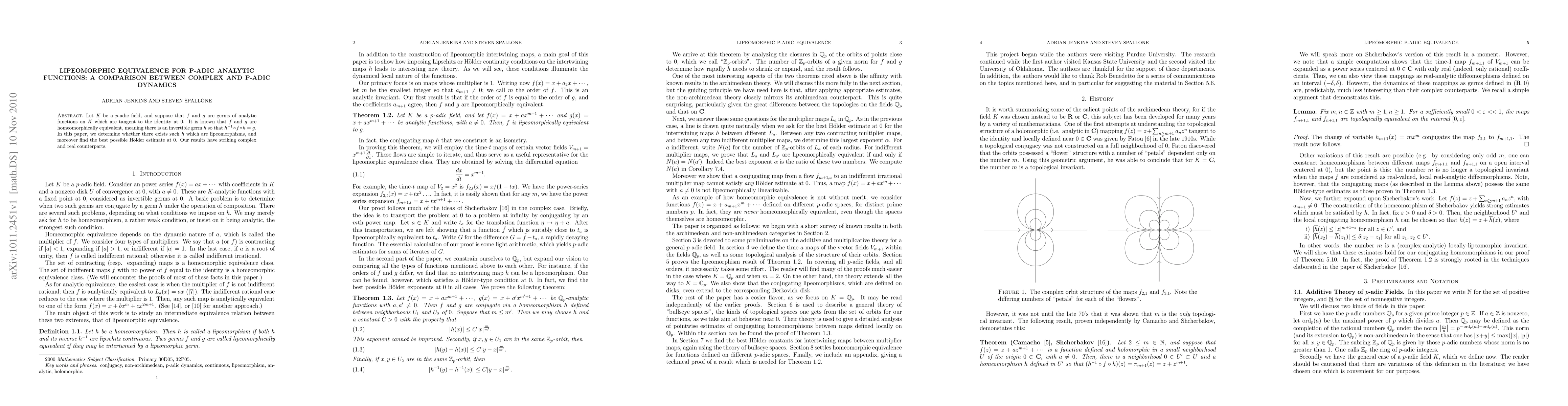Let K be a p-adic field, and suppose that f and g are germs of analytic functions on K which are tangent to the identity at 0. It is known that f and g are homeomorphically equivalent, meaning there is an invertible germ h conjugating f to g. In this paper, we determine whether there exists such h which are lipeomorphisms, and moreover find the best possible Holder estimate at 0. Our results have striking complex and real counterparts.