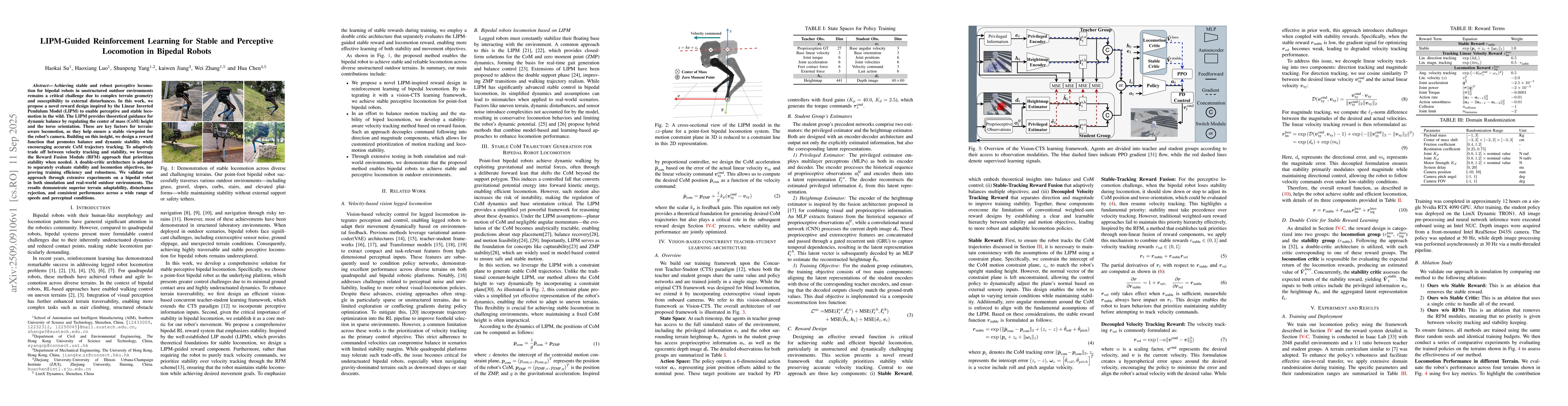 Achieving stable and robust perceptive locomotion for bipedal robots in unstructured outdoor environments remains a critical challenge due to complex terrain geometry and susceptibility to external disturbances. In this work, we propose a novel reward design inspired by the Linear Inverted Pendulum Model (LIPM) to enable perceptive and stable locomotion in the wild. The LIPM provides theoretical guidance for dynamic balance by regulating the center of mass (CoM) height and the torso orientation. These are key factors for terrain-aware locomotion, as they help ensure a stable viewpoint for the robot's camera. Building on this insight, we design a reward function that promotes balance and dynamic stability while encouraging accurate CoM trajectory tracking. To adaptively trade off between velocity tracking and stability, we leverage the Reward Fusion Module (RFM) approach that prioritizes stability when needed. A double-critic architecture is adopted to separately evaluate stability and locomotion objectives, improving training efficiency and robustness. We validate our approach through extensive experiments on a bipedal robot in both simulation and real-world outdoor environments. The results demonstrate superior terrain adaptability, disturbance rejection, and consistent performance across a wide range of speeds and perceptual conditions.