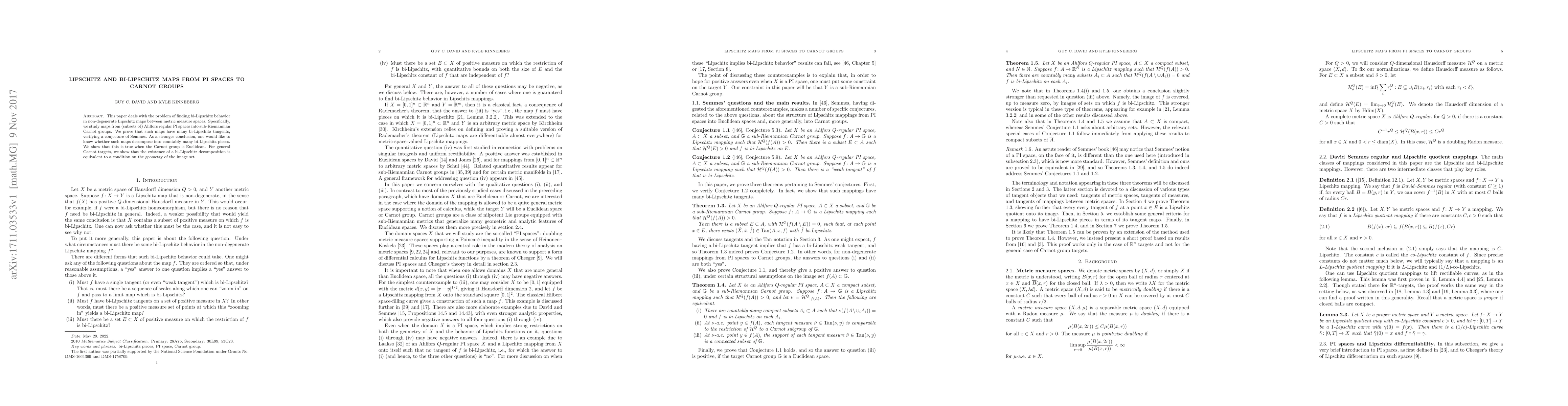 This paper investigates bi-Lipschitz properties of Lipschitz maps from Ahlfors regular PI spaces to Carnot groups, proving the existence of many bi-Lipschitz tangents and establishing bi-Lipschitz decompositions for Euclidean targets while linking general cases to image geometry.