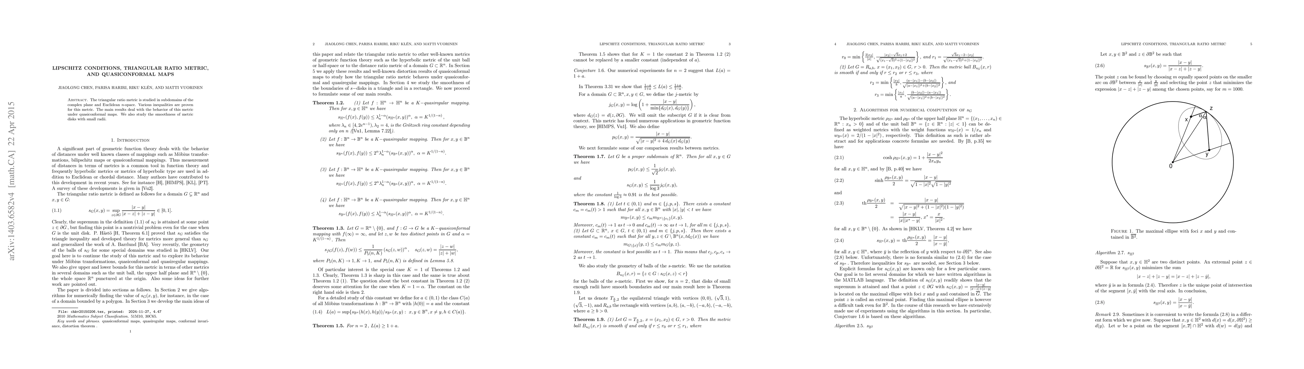 This paper investigates the triangular ratio metric in complex and Euclidean spaces, proving various inequalities. It focuses on how this metric behaves under quasiconformal maps and examines the smoothness of metric disks with small radii.