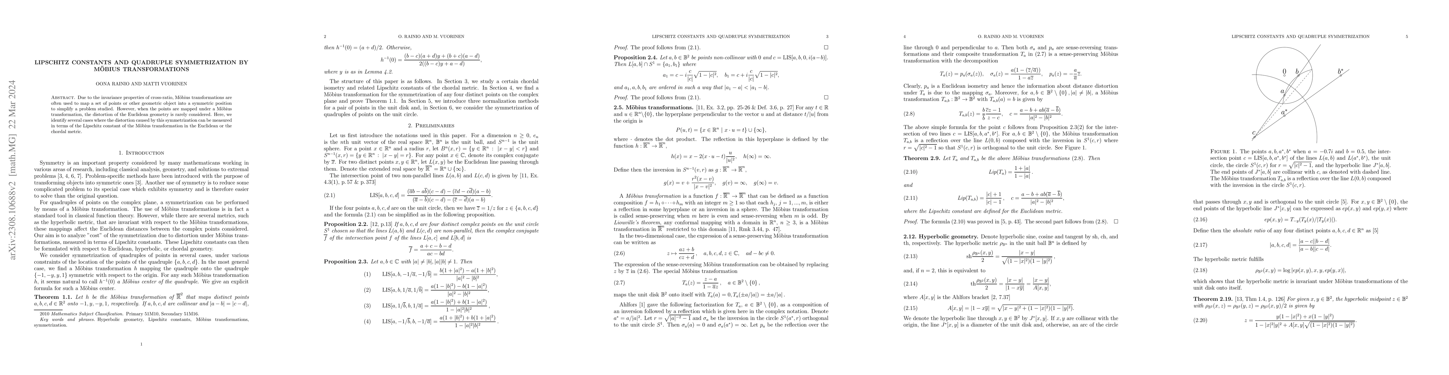 Due to the invariance properties of cross-ratio, M\"obius transformations are often used to map a set of points or other geometric object into a symmetric position to simplify a problem studied. However, when the points are mapped under a M\"obius transformation, the distortion of the Euclidean geometry is rarely considered. Here, we identify several cases where the distortion caused by this symmetrization can be measured in terms of the Lipschitz constant of the M\"obius transformation in the Euclidean or the chordal metric.