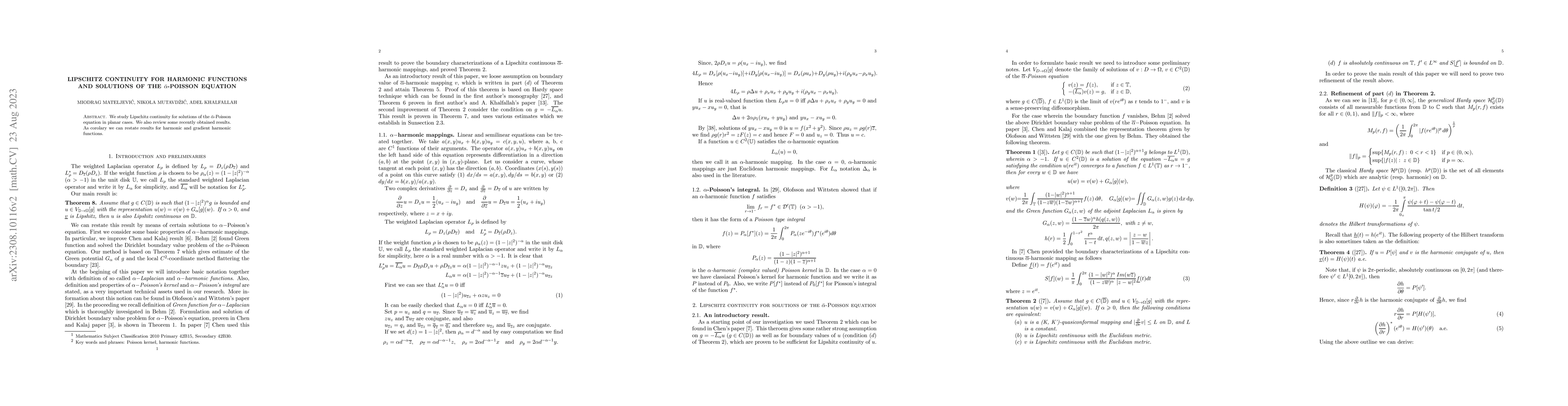 This paper investigates the Lipschitz continuity of solutions to the $\bar{\alpha}$-Poisson equation in two-dimensional settings, reviewing recent findings and restating results for harmonic and gradient harmonic functions as corollaries.