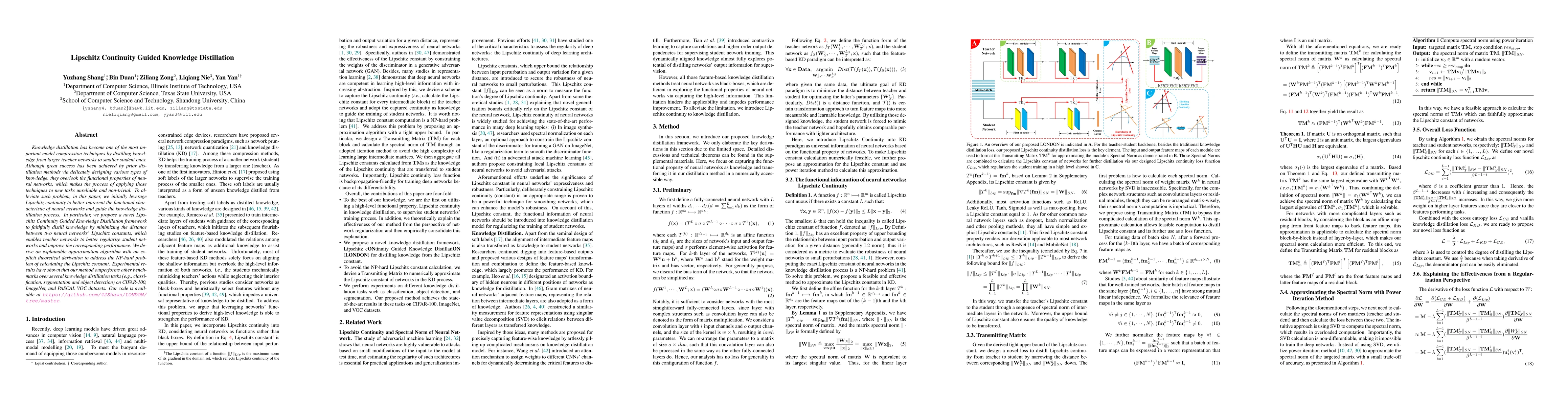 This paper proposes a Lipschitz Continuity Guided Knowledge Distillation framework to enhance model compression by leveraging the functional properties of neural networks. The method minimizes the difference in Lipschitz constants between teacher and student networks, improving student performance and reliability across various tasks.