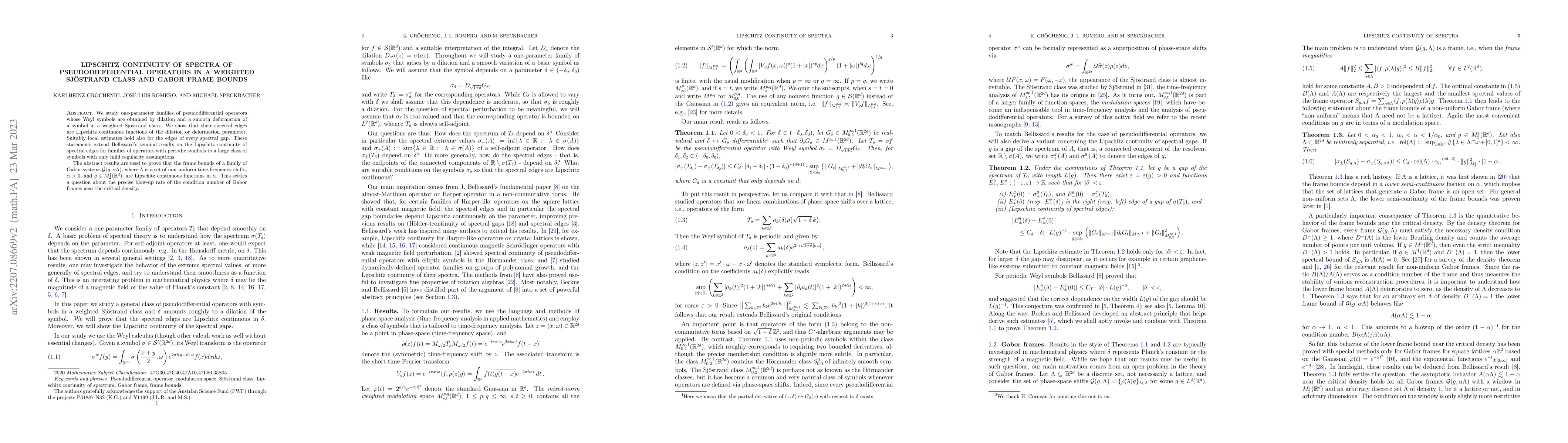 This paper demonstrates Lipschitz continuity of spectral edges for pseudodifferential operators with symbols in a weighted Sjöstrand class, extending Bellissard's results. It also proves Lipschitz continuity of frame bounds for non-uniform Gabor systems, addressing the precise blow-up rate of the condition number near the critical density.