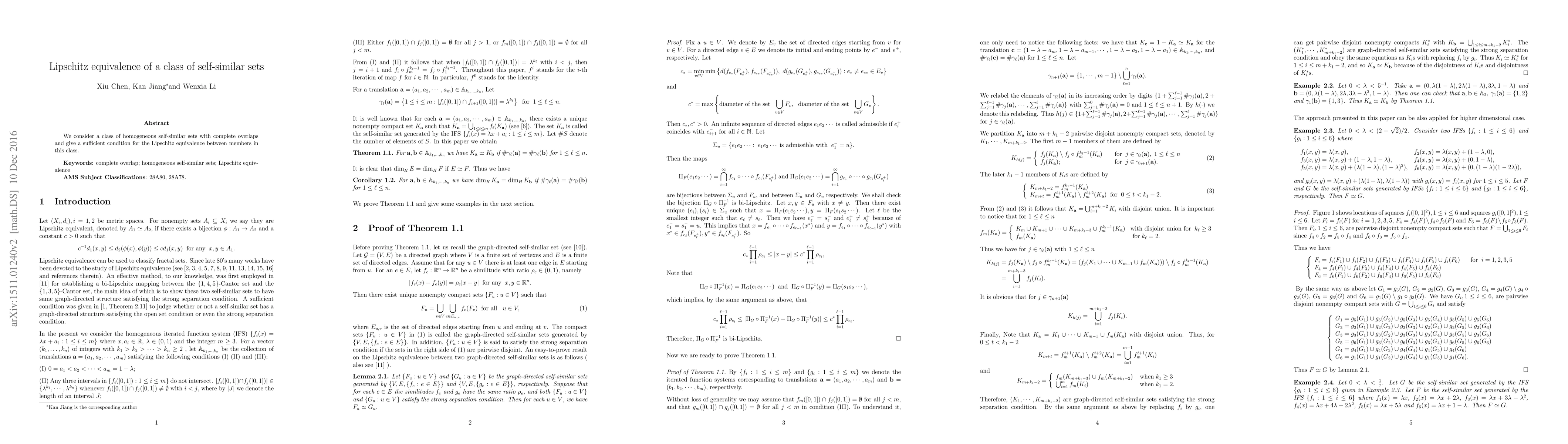 Summary: This paper explores a class of self-similar sets with complete overlaps and provides a sufficient condition for Lipschitz equivalence among its members, establishing a framework for their geometric comparability.