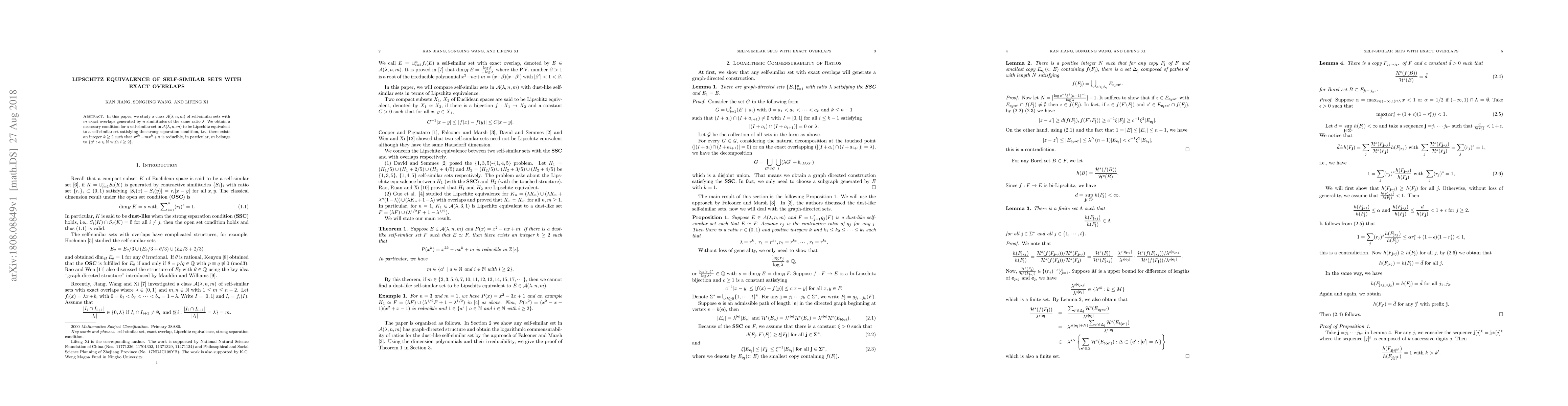This paper investigates self-similar sets with exact overlaps generated by similitudes of the same ratio, establishing a necessary condition for Lipschitz equivalence to sets satisfying strong separation, specifically when certain polynomial reducibility conditions are met.