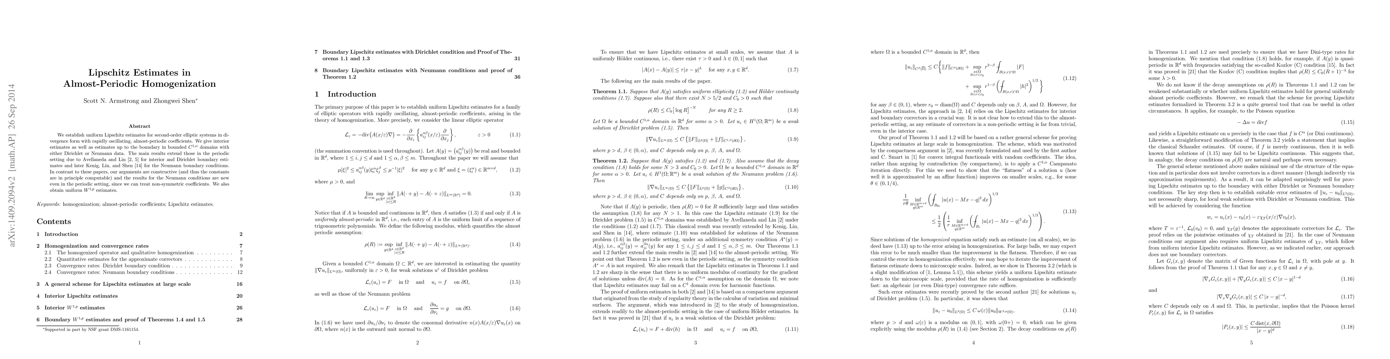 The novelty lies in the constructive approach to Lipschitz estimates, enabling practical computation of constants, and in extending Neumann boundary condition results to non-symmetric coefficients in both periodic and almost-periodic settings.