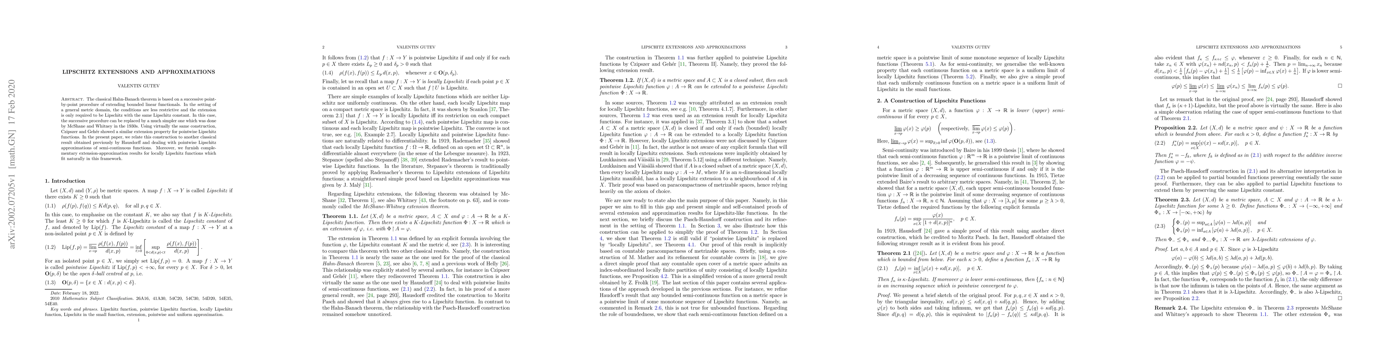 The classical Hahn-Banach theorem is based on a successive point-by-point procedure of extending bounded linear functionals. In the setting of a general metric domain, the conditions are less restrictive and the extension is only required to be Lipschitz with the same Lipschitz constant. In this case, the successive procedure can be replaced by a much simpler one which was done by McShane and Whitney in the 1930s. Using virtually the same construction, Czipszer and Geh\'er showed a similar extension property for pointwise Lipschitz functions. In the present paper, we relate this construction to another classical result obtained previously by Hausdorff and dealing with pointwise Lipschitz approximations of semi-continuous functions. Moreover, we furnish complementary extension-approximation results for locally Lipschitz functions which fit naturally in this framework.