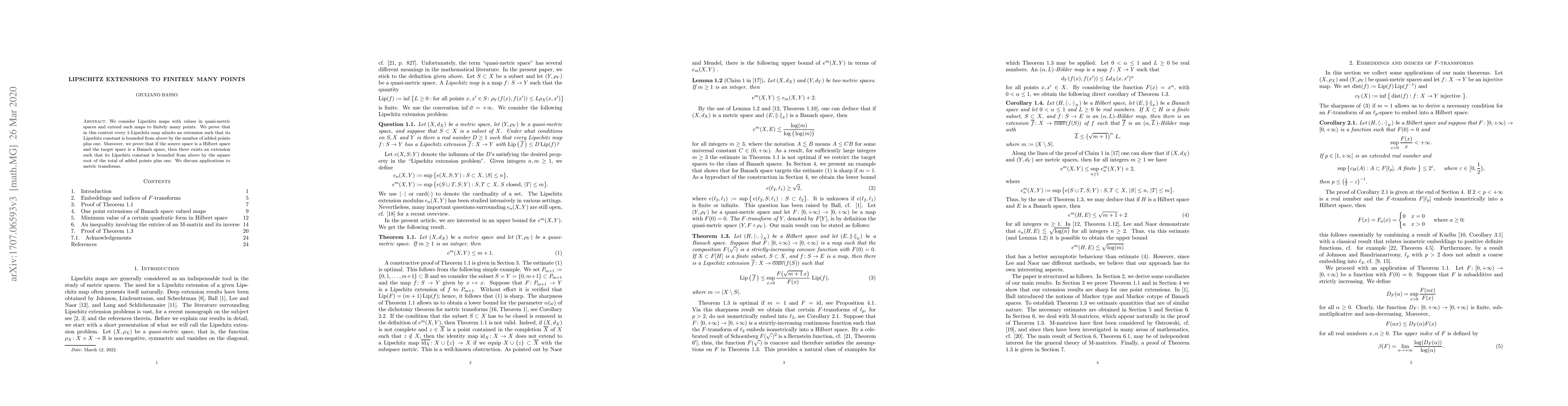 We consider Lipschitz maps with values in quasi-metric spaces and extend such maps to finitely many points. We prove that in this context every 1-Lipschitz map admits an extension such that its Lipschitz constant is bounded from above by the number of added points plus one. Moreover, we prove that if the source space is a Hilbert space and the target space is a Banach space, then there exists an extension such that its Lipschitz constant is bounded from above by the square root of the total of added points plus one. We discuss applications to metric transforms.