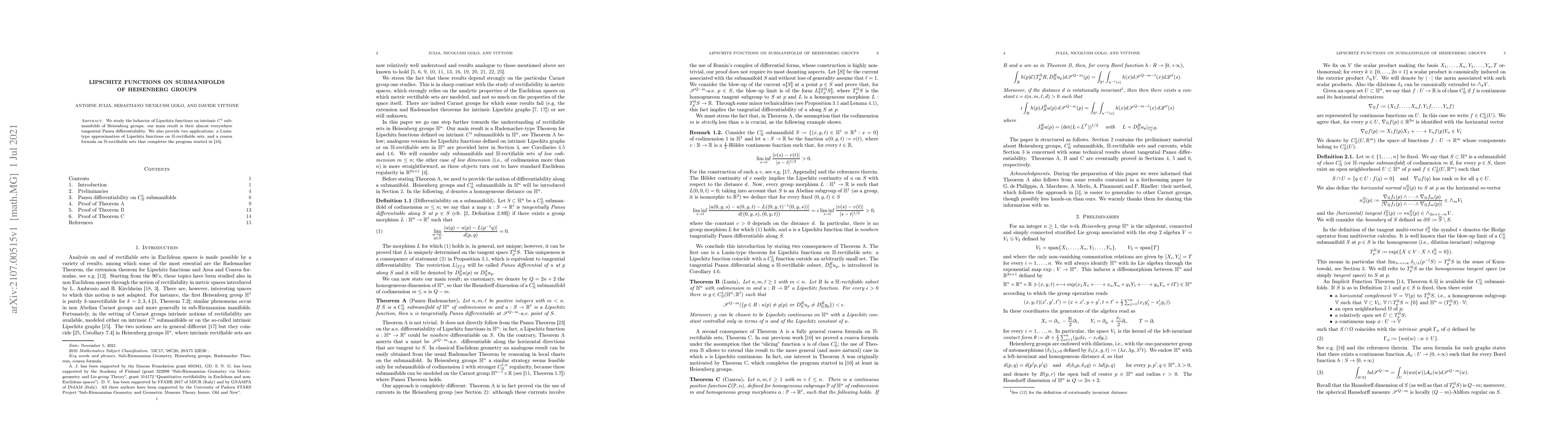 This paper investigates Lipschitz functions on intrinsic $C^1$ submanifolds within Heisenberg groups, proving their almost everywhere tangential Pansu differentiability. It also demonstrates a Lusin-type approximation for such functions on $\HH$-rectifiable sets and completes a coarea formula on these sets.