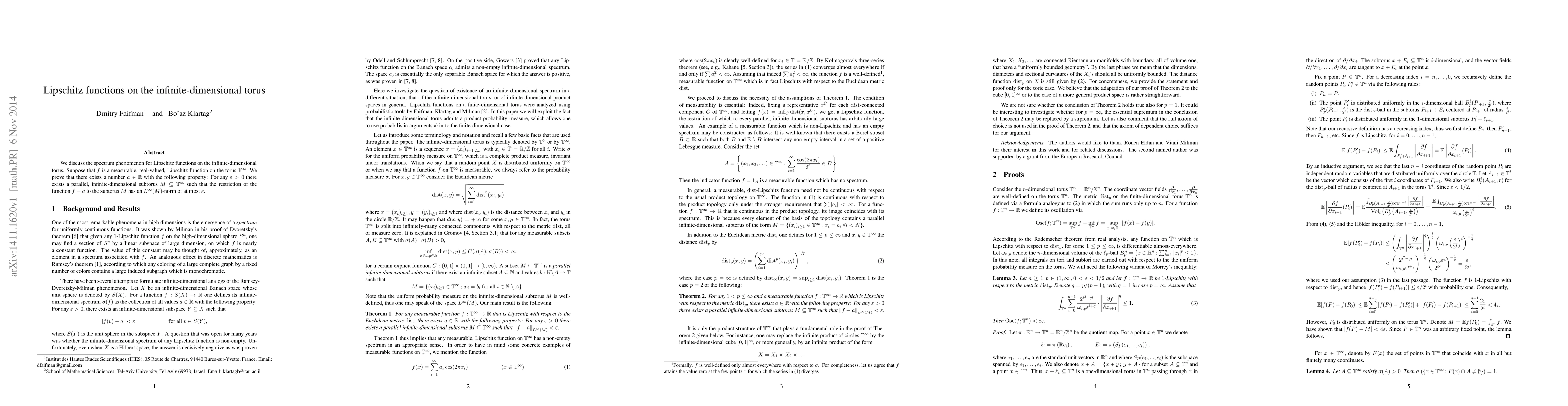 This paper proves that for a measurable, real-valued Lipschitz function $f$ on the infinite-dimensional torus $\mathbb{T}^{\infty}$, there exists a real number $a$ such that for any $\epsilon > 0$, the function $f-a$ can be restricted to a parallel subtorus $M$ with an $L^{\infty}(M)$-norm of at most $\epsilon$.