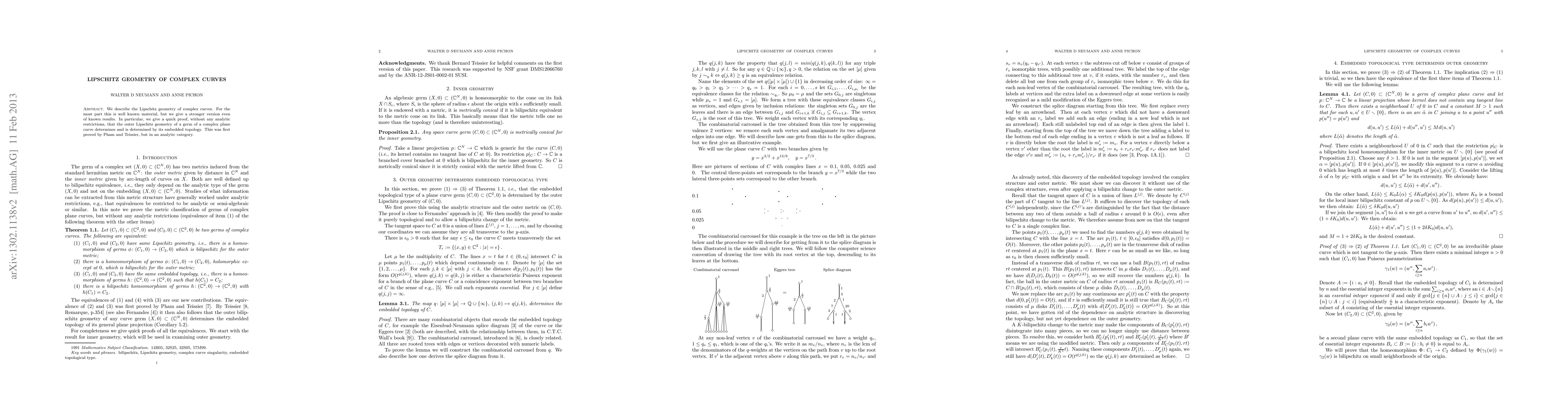 We describe the Lipschitz geometry of complex curves. For the most part this is well known material, but we give a stronger version even of known results. In particular, we give a quick proof, without any analytic restrictions, that the outer Lipschitz geometry of a germ of a complex plane curve determines and is determined by its embedded topology. This was first proved by Pham and Teissier, but in an analytic category.