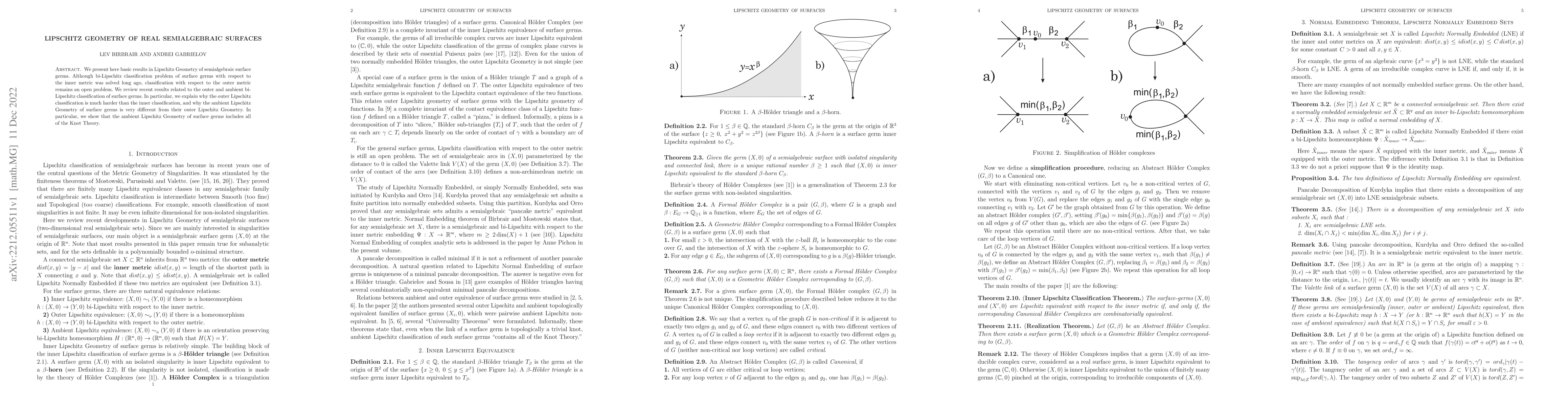 We present here basic results in Lipschitz Geometry of semialgebraic surface germs. Although bi-Lipschitz classification problem of surface germs with respect to the inner metric was solved long ago, classification with respect to the outer metric remains an open problem. We review recent results related to the outer and ambient bi-Lipschitz classification of surface germs. In particular, we explain why the outer Lipschitz classification is much harder than the inner classification, and why the ambient Lipschitz Geometry of surface germs is very different from their outer Lipschitz Geometry. In particular, we show that the ambient Lipschitz Geometry of surface germs includes all of the Knot Theory.