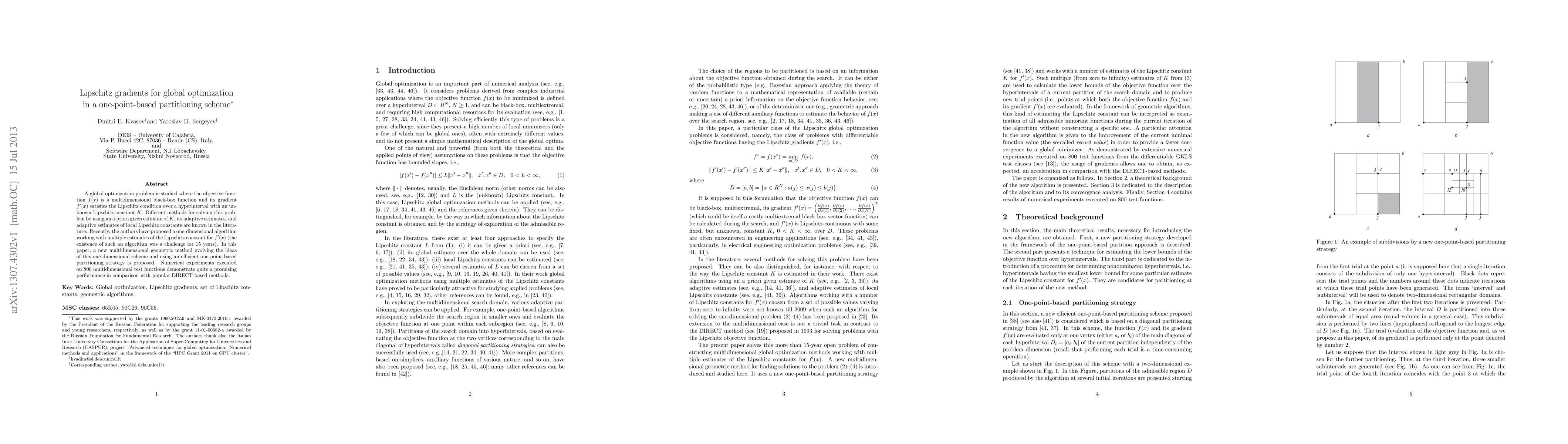 This paper proposes a new multidimensional optimization method leveraging Lipschitz gradient properties and a one-point-based partitioning scheme, showing promising results in comparison to DIRECT-based methods through numerical experiments on 800 test functions. The method extends a successful one-dimensional algorithm to higher dimensions.