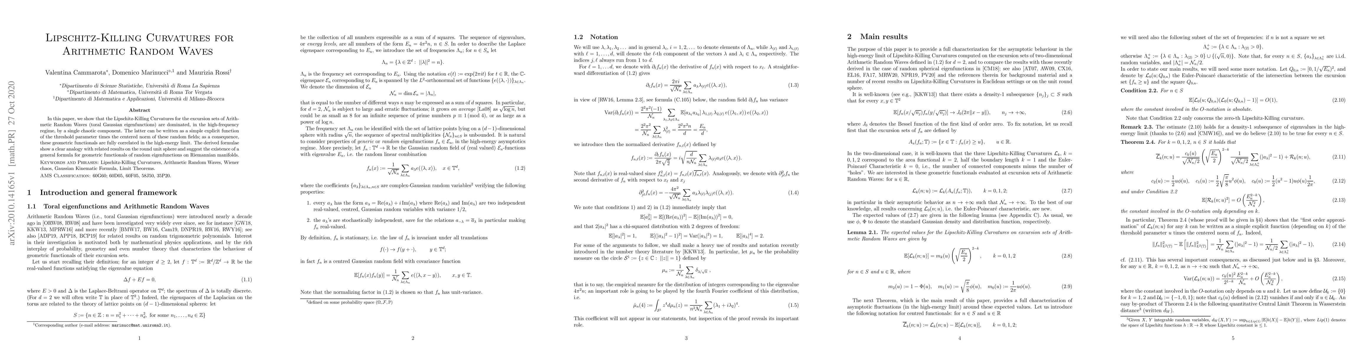 This paper demonstrates that high-frequency Lipschitz-Killing Curvatures for Arithmetic Random Waves are primarily influenced by a single chaotic component, which is explicitly linked to the threshold parameter and the centered norm of the random fields. The findings suggest a potential general formula for geometric functionals of random eigenfunctions on Riemannian manifolds.