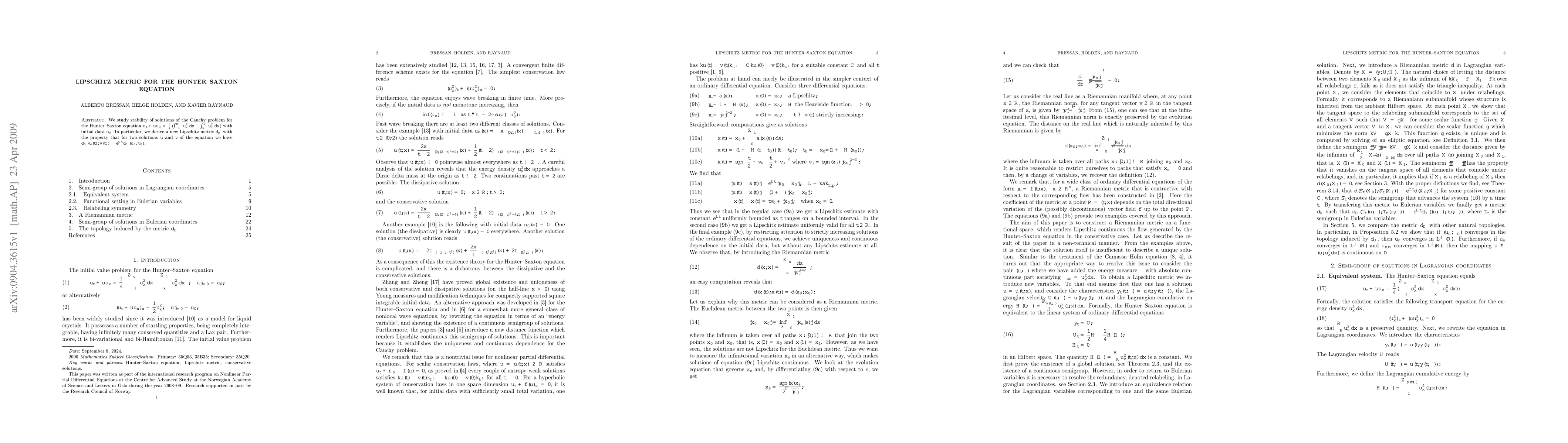 This paper introduces a new Lipschitz metric to study stability of solutions to the Hunter-Saxton equation, showing that two solution trajectories are bounded by an exponential function of time.