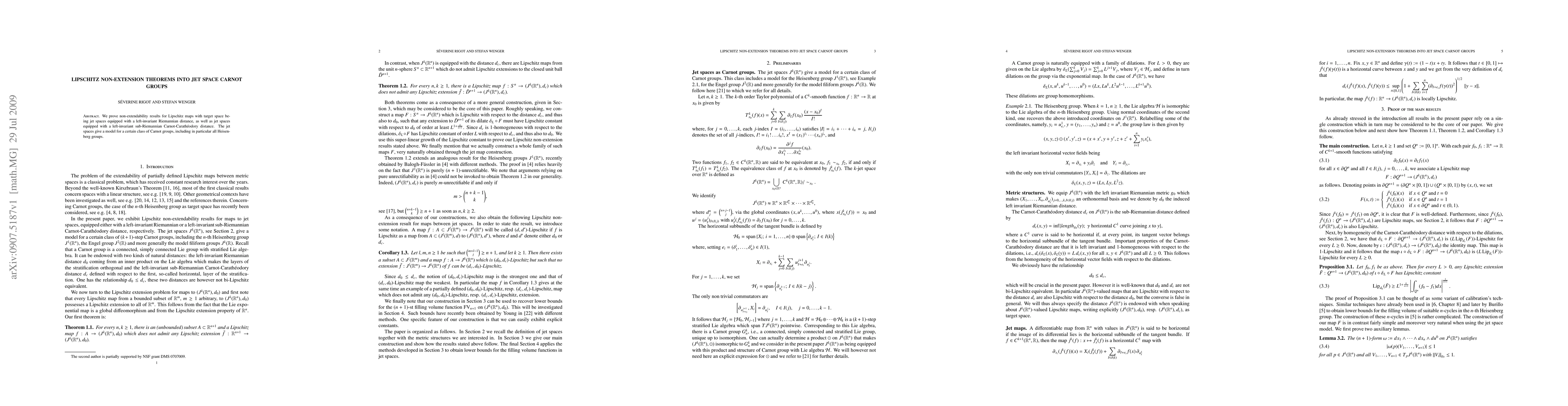 This paper proves that Lipschitz maps cannot be extended when their target spaces are jet spaces with either a Riemannian or a sub-Riemannian Carnot-Caratheodory distance, modeling specific Carnot groups like the Heisenberg groups.