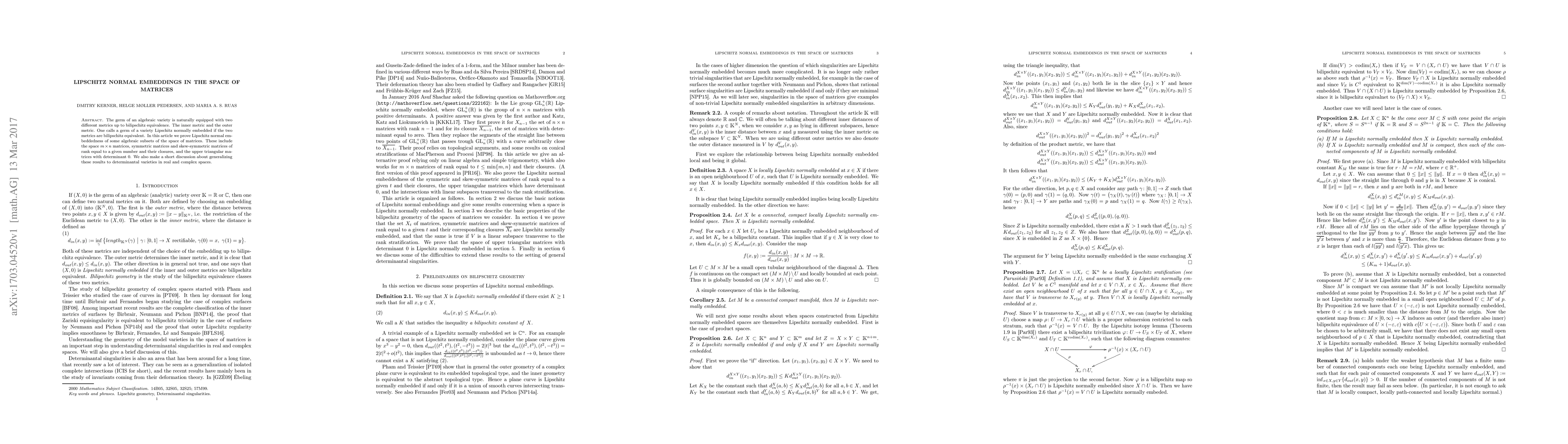 Researchers prove that certain types of matrices can be bilipschitz equivalent to each other, showing they have the same inner and outer metrics.
