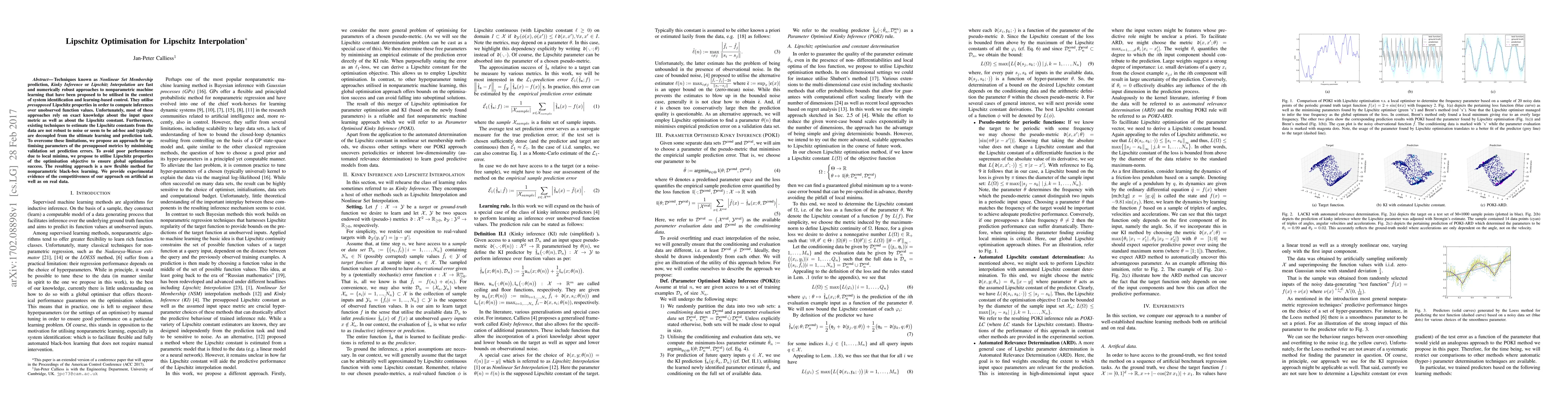 This paper proposes an optimised Lipschitz interpolation method for nonparametric machine learning, addressing the limitations of existing techniques by minimising validation errors to determine Lipschitz constants. It leverages Lipschitz properties to ensure global optimisation success, demonstrating competitiveness on both artificial and real datasets.