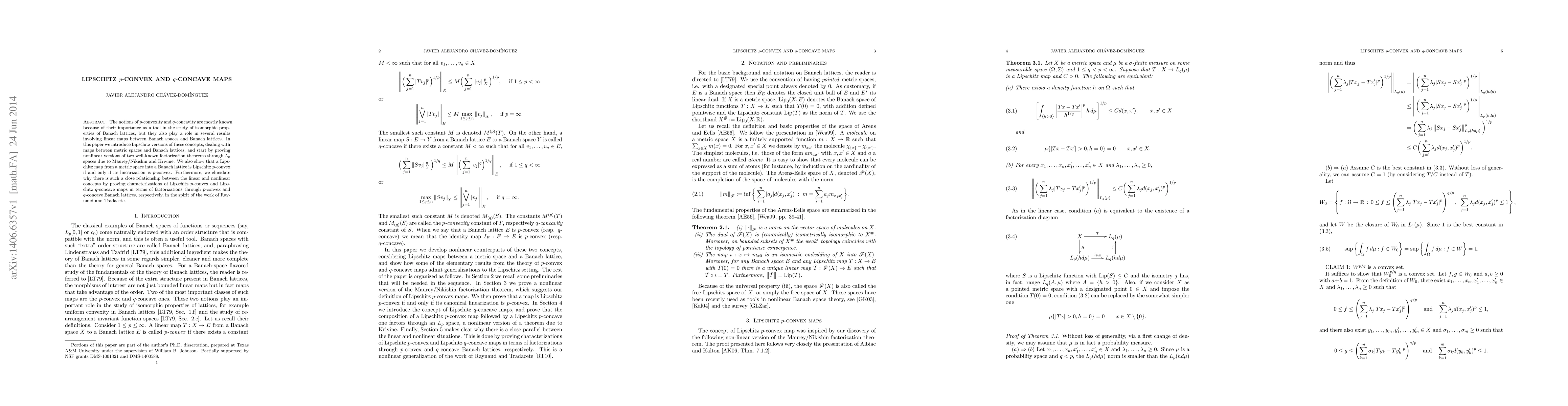 This paper introduces Lipschitz versions of $p$-convexity and $q$-concavity for maps between metric spaces and Banach lattices, proving factorization theorems through $L_p$ spaces and showing equivalence between Lipschitz $p$-convex maps and their linear counterparts. It also establishes characterizations linking these Lipschitz properties to factorizations through $p$-convex and $q$-concave Banach lattices.