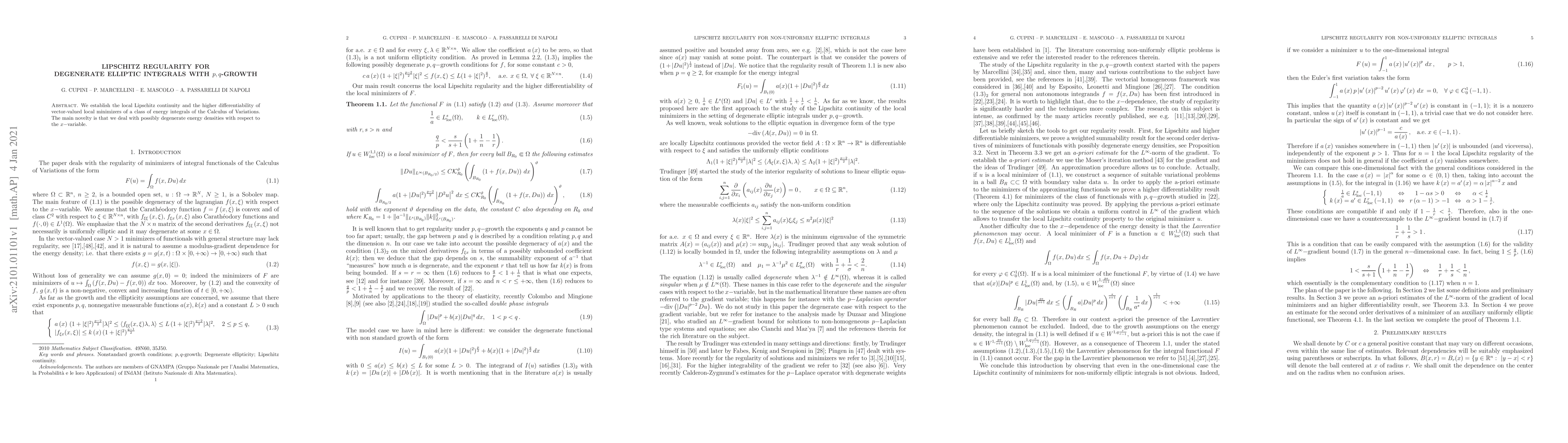 Researchers establish local Lipschitz continuity and higher differentiability for a specific class of energy integrals in the Calculus of Variations, even with possibly degenerate energy densities.