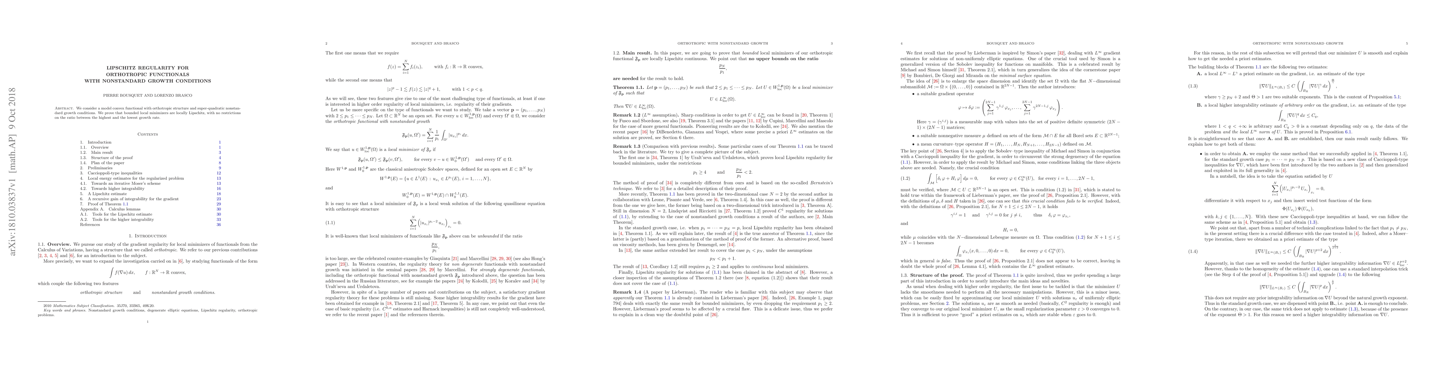 Summary: This paper investigates convex functionals with orthotropic and nonstandard super-quadratic growth conditions, proving that bounded local minimizers exhibit local Lipschitz regularity without constraints on the growth rate ratios.