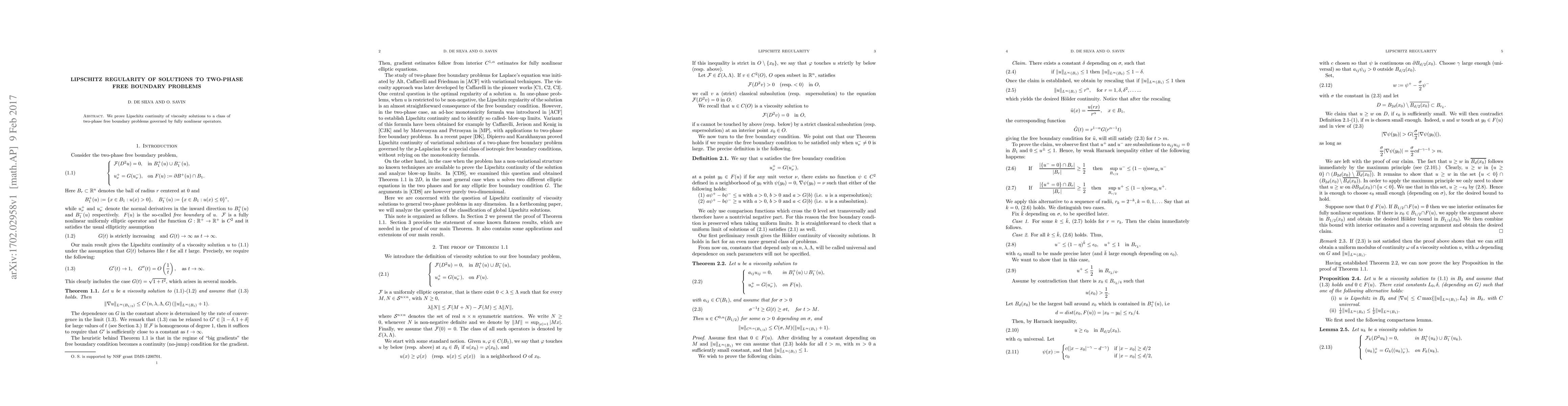 Summary: This paper establishes Lipschitz regularity for viscosity solutions to two-phase free boundary problems using fully nonlinear operators, demonstrating their Lipschitz continuity.