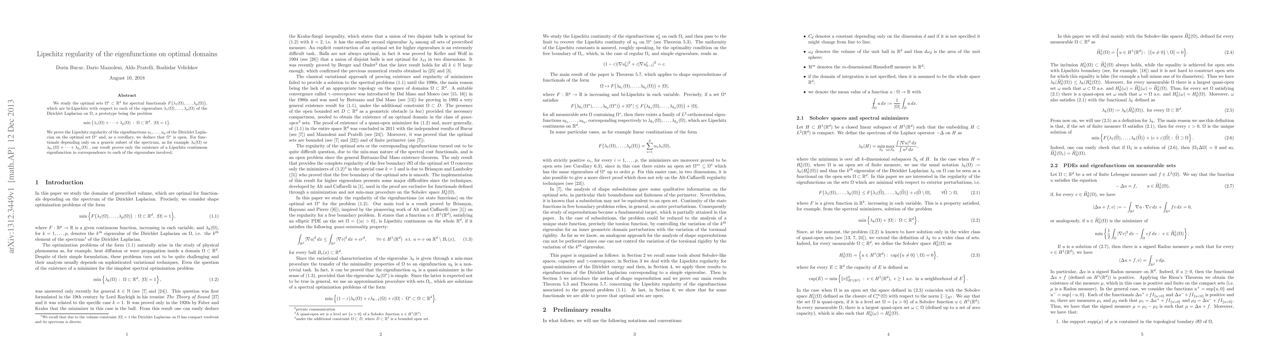 This paper explores the Lipschitz regularity of eigenfunctions on optimal sets for spectral functionals, proving that eigenfunctions on these optimal sets are Lipschitz continuous. It also deduces that the optimal sets themselves are open.