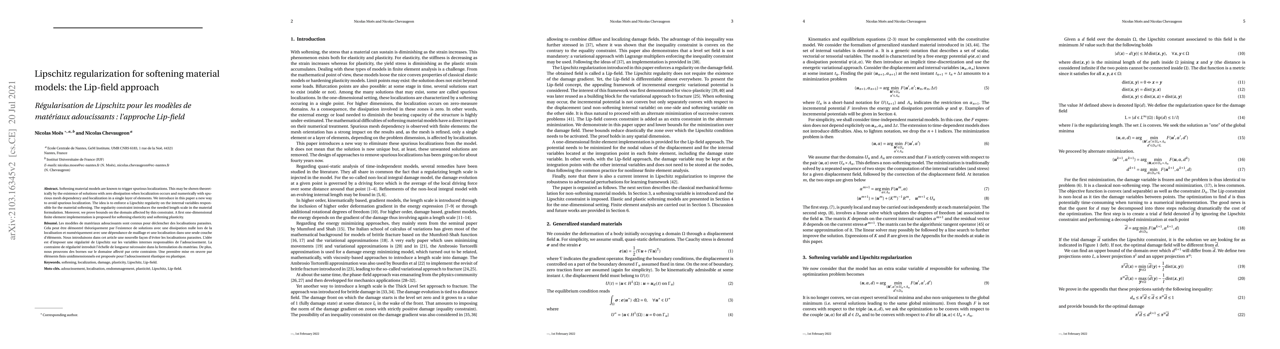 Softening material models are known to trigger spurious localizations.This may be shown theoretically by the existence of solutions with zero dissipation when localization occurs and numerically with spurious mesh dependency and localization in a single layer of elements. We introduce in this paper a new way to avoid spurious localization. The idea is to enforce a Lipschitz regularity on the internal variables responsible for the material softening. The regularity constraint introduces the needed length scale in the material formulation. Moreover, we prove bounds on the domain affected by this constraint. A first one-dimensional finite element implementation is proposed for softening elasticity and softening plasticity.