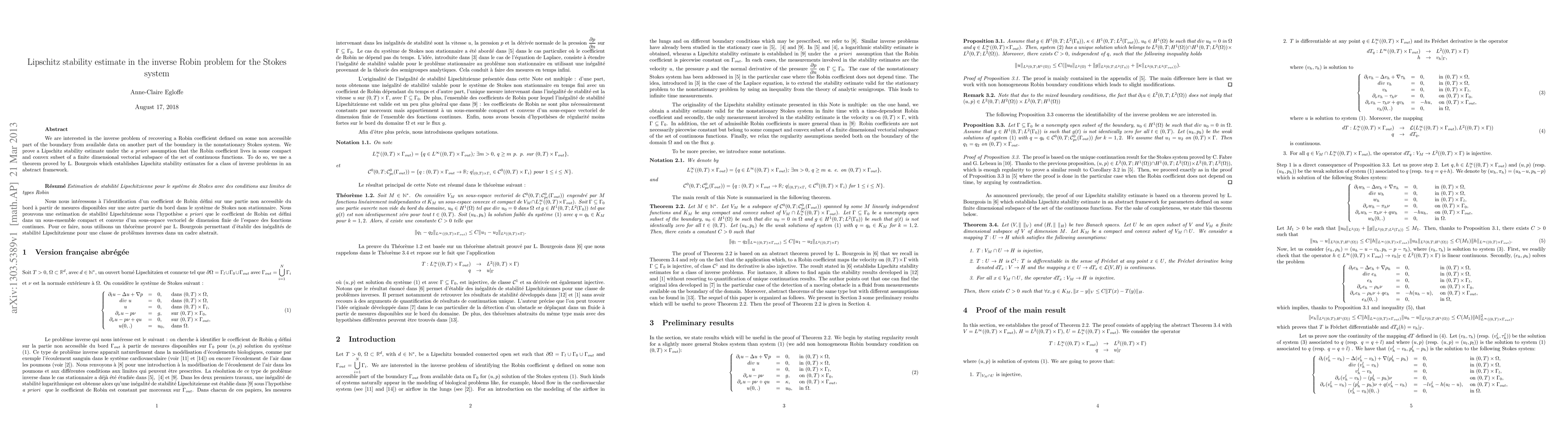 This paper addresses the inverse problem of determining a Robin coefficient from boundary data in the nonstationary Stokes system, proving Lipschitz stability under the assumption that the coefficient is within a compact, convex subset. The proof leverages a theorem by L. Bourgeois for Lipschitz stability in abstract inverse problems.