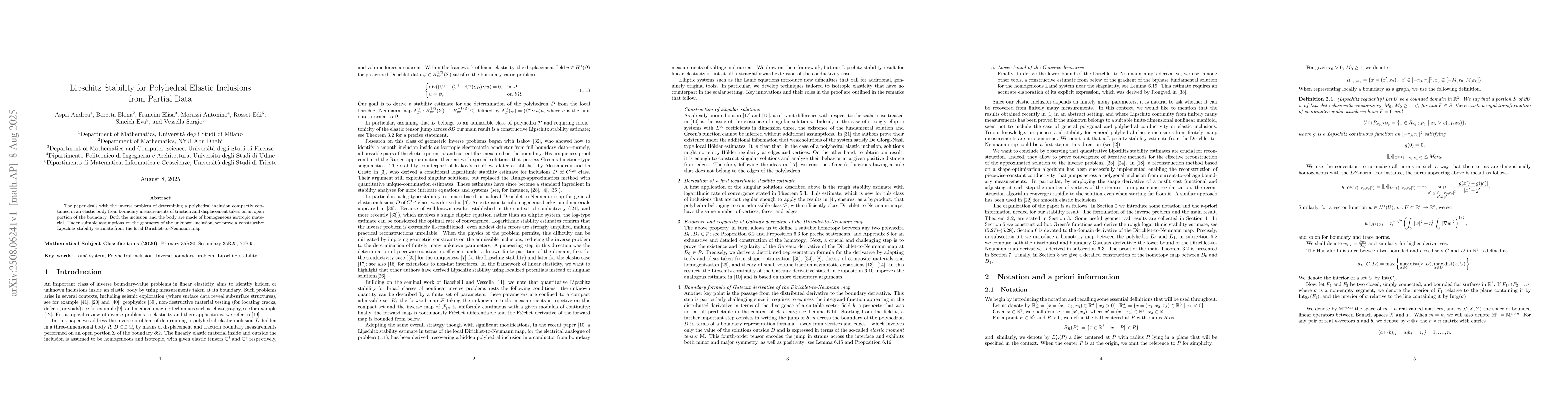 The paper presents detailed proofs and a constructive Lipschitz stability estimate for inverse problems involving elastic inclusions, advancing the theoretical framework in this area.