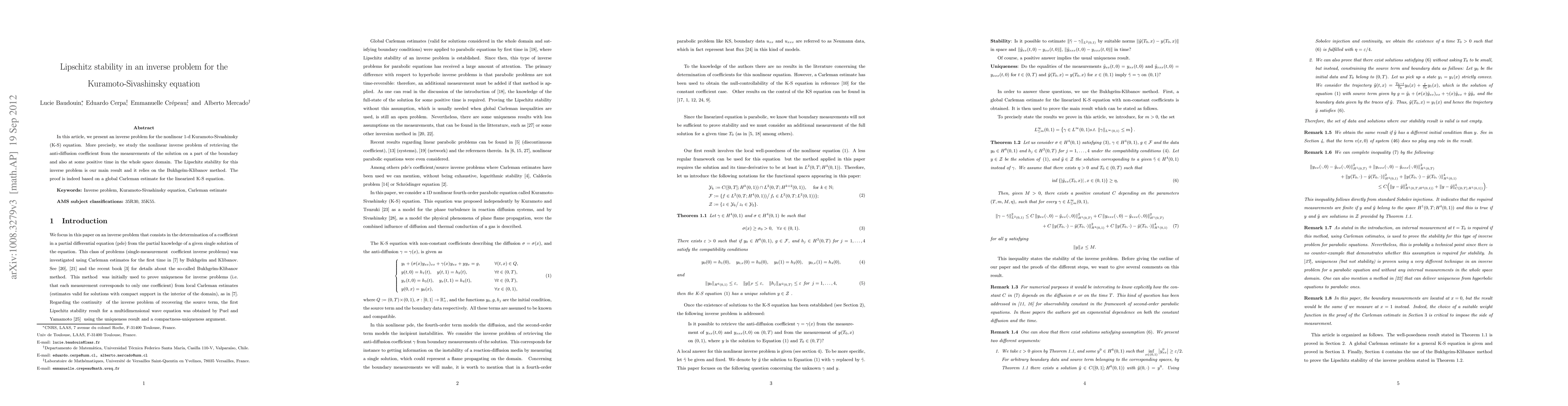 This paper presents an inverse problem for the nonlinear 1-d Kuramoto-Sivashinsky (K-S) equation. More precisely, we study the nonlinear inverse problem of retrieving the anti-diffusion coefficient from the measurements of the solution on a part of the boundary and at some positive time everywhere. Uniqueness and Lipschitz stability for this inverse problem are proven with the Bukhgeim-Klibanov method. The proof is based on a global Carleman estimate for the linearized K-S equation.