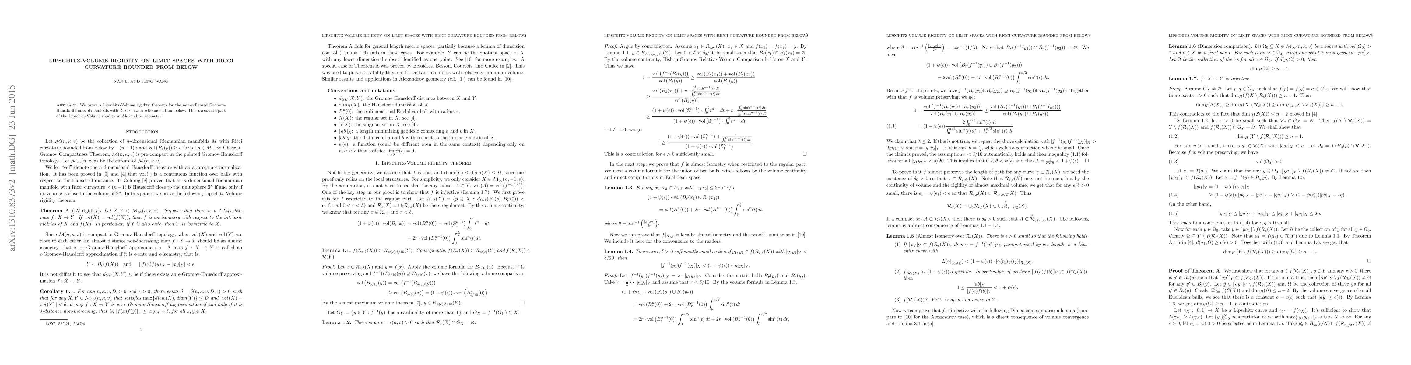 Summary: The paper establishes a Lipschitz-Volume rigidity theorem for non-collapsed Gromov-Hausdorff limits of manifolds with bounded Ricci curvature, analogous to results in Alexandrov geometry. This provides new insights into the structure of such limits.