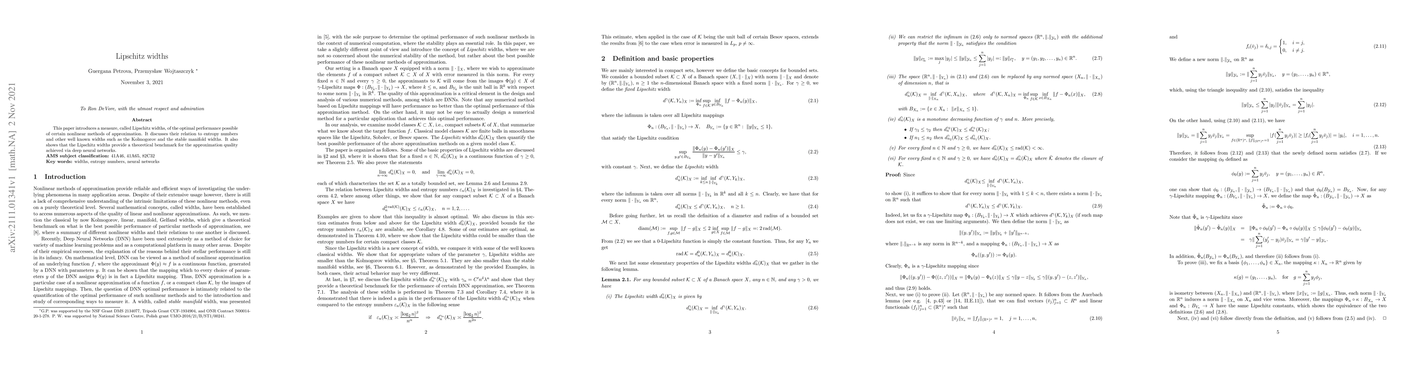 This paper introduces Lipschitz widths as a measure of the optimal performance of nonlinear approximation methods, relating them to entropy numbers and other widths like Kolmogorov and stable manifold widths. It demonstrates that Lipschitz widths serve as a theoretical benchmark for the approximation quality of deep neural networks.
