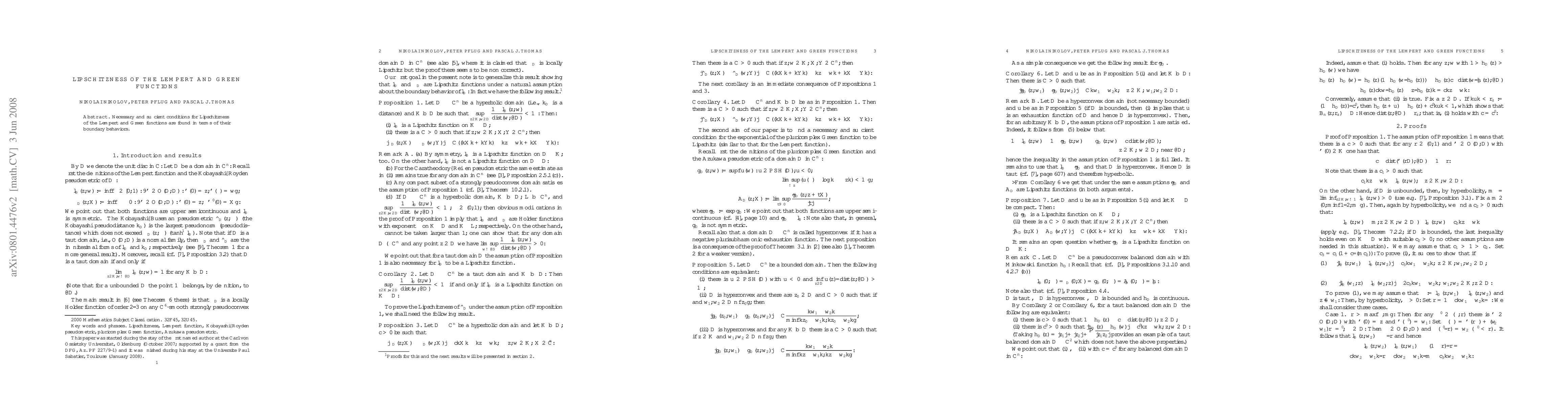 Summary: This paper identifies the boundary behavior criteria that ensure the Lipschitzness of the Lempert and Green functions, providing necessary and sufficient conditions for their Lipschitz properties.