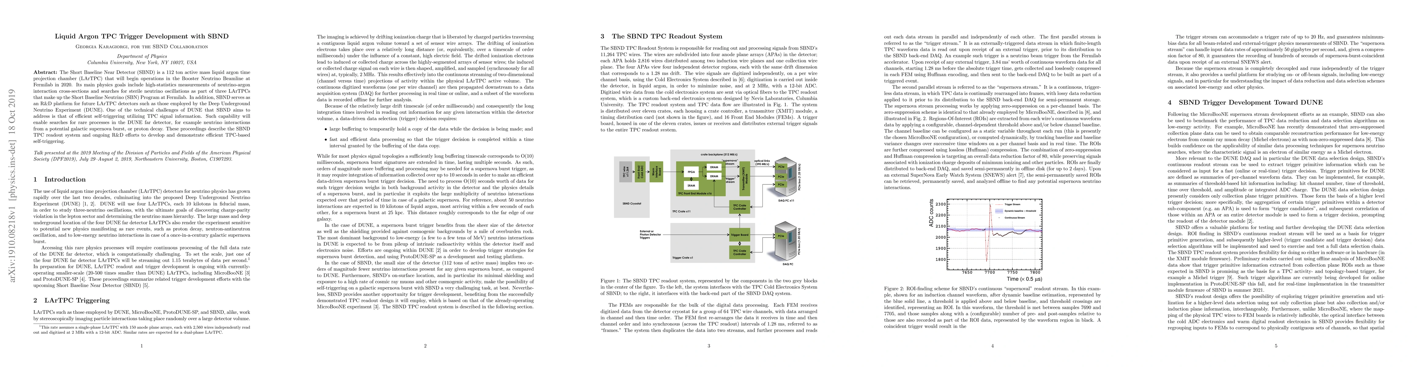 The Short Baseline Near Detector (SBND) is a 112 ton active mass liquid argon time projection chamber (LArTPC) that will begin operations in the Booster Neutrino Beamline at Fermilab in 2020. Its main physics goals include high-statistics measurements of neutrino-argon interaction cross-sections and searches for sterile neutrino oscillations as part of three LArTPCs that make up the Short Baseline Neutrino (SBN) Program at Fermilab. In addition, SBND serves as an R\&D platform for future LArTPC detectors such as those employed by the Deep Underground Neutrino Experiment (DUNE). One of the technical challenges of DUNE that SBND aims to address is that of efficient self-triggering utilizing TPC signal information. Such capability will enable searches for rare processes in the DUNE far detector, for example neutrino interactions from a potential galactic supernova burst, or proton decay. These proceedings describe the SBND TPC readout system and ongoing R\&D efforts to develop and demonstrate efficient TPC-based self-triggering.