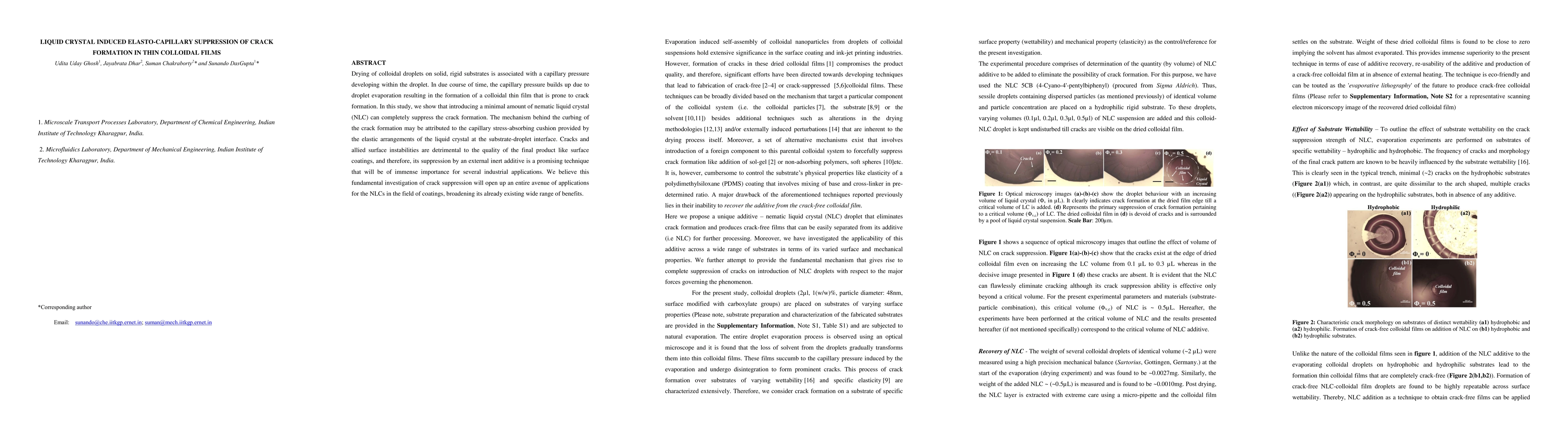 This study demonstrates that adding a small amount of nematic liquid crystal (NLC) can completely prevent crack formation in drying colloidal thin films, attributing the effect to the NLC's ability to absorb capillary stress at the substrate-droplet interface. This discovery holds significant promise for improving the quality of industrial coatings and expanding the applications of NLCs.