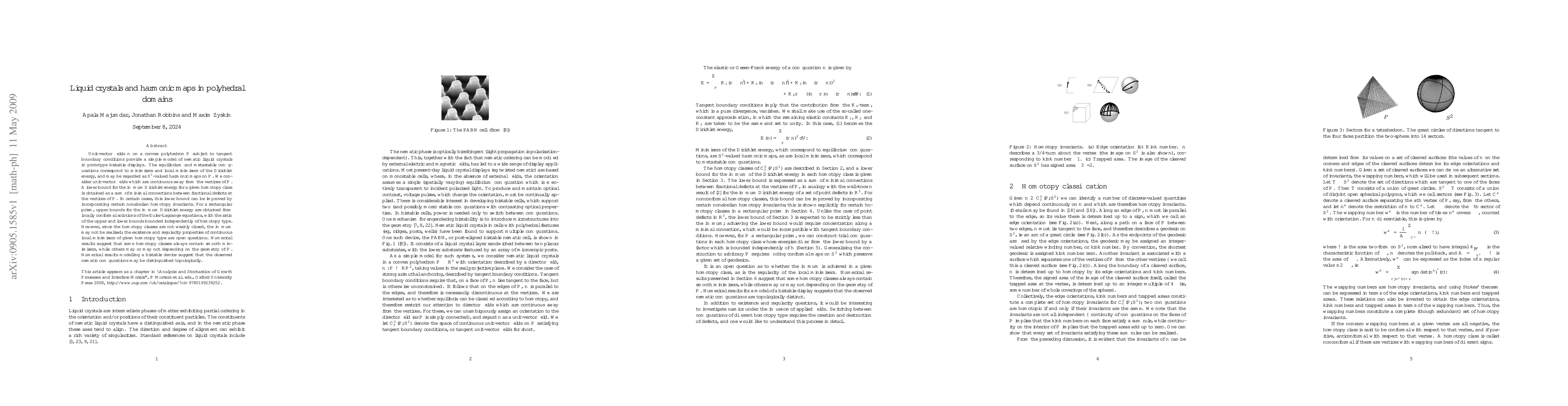 Unit-vector fields $\nvec$ on a convex polyhedron $P$ subject to tangent boundary conditions provide a simple model of nematic liquid crystals in prototype bistable displays. The equilibrium and metastable configurations correspond to minimisers and local minimisers of the Dirichlet energy, and may be regarded as $S^2$-valued harmonic maps on $P$. We consider unit-vector fields which are continuous away from the vertices of $P$. A lower bound for the infimum Dirichlet energy for a given homotopy class is obtained as a sum of minimal connections between fractional defects at the vertices of $P$. In certain cases, this lower bound can be improved by incorporating certain nonabelian homotopy invariants. For a rectangular prism, upper bounds for the infimum Dirichlet energy are obtained from locally conformal solutions of the Euler-Lagrange equations, with the ratio of the upper and lower bounds bounded independently of homotopy type. However, since the homotopy classes are not weakly closed, the infimum may not be realised; the existence and regularity properties of continuous local minimisers of given homotopy type are open questions. Numerical results suggest that some homotopy classes always contain smooth minimisers, while others may or may not depending on the geometry of $P$. Numerical results modelling a bistable device suggest that the observed nematic configurations may be distinguished topologically.