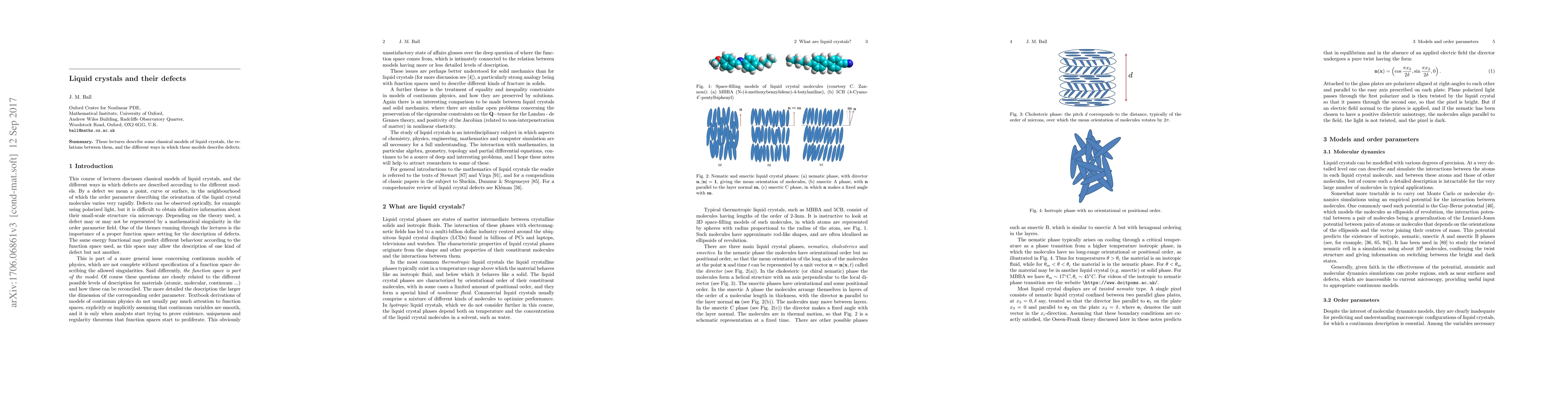 These lecture notes discuss classical models of liquid crystals, and the different ways in which defects are described according to the different models.
