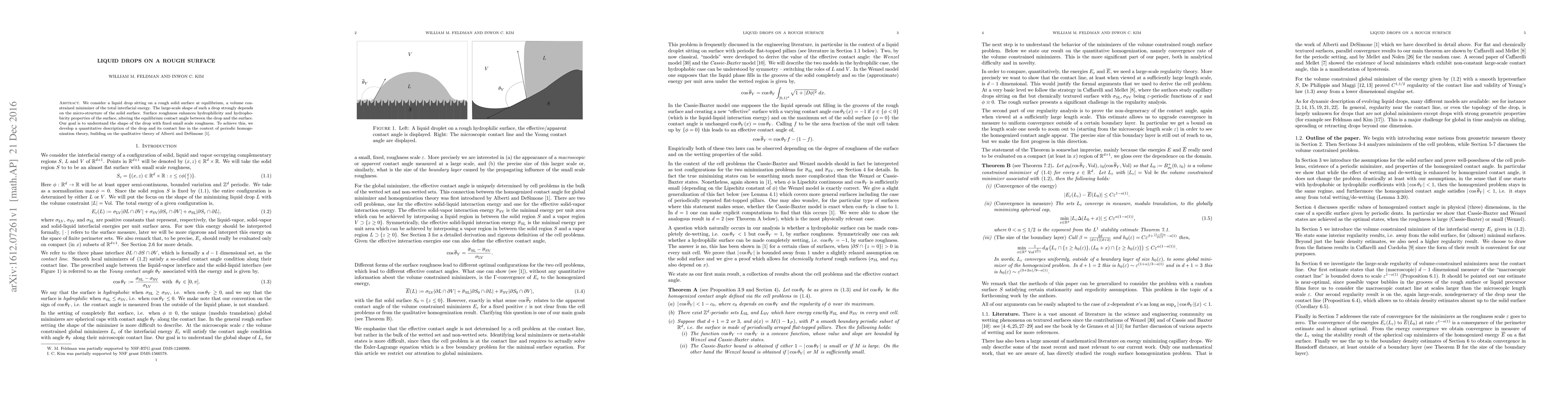 A liquid drop on a rough surface can take on various shapes depending on its micro-structure, affecting interfacial energy and contact angle. Researchers developed a quantitative model to describe the drop's shape and contact line in periodic homogenization theory.