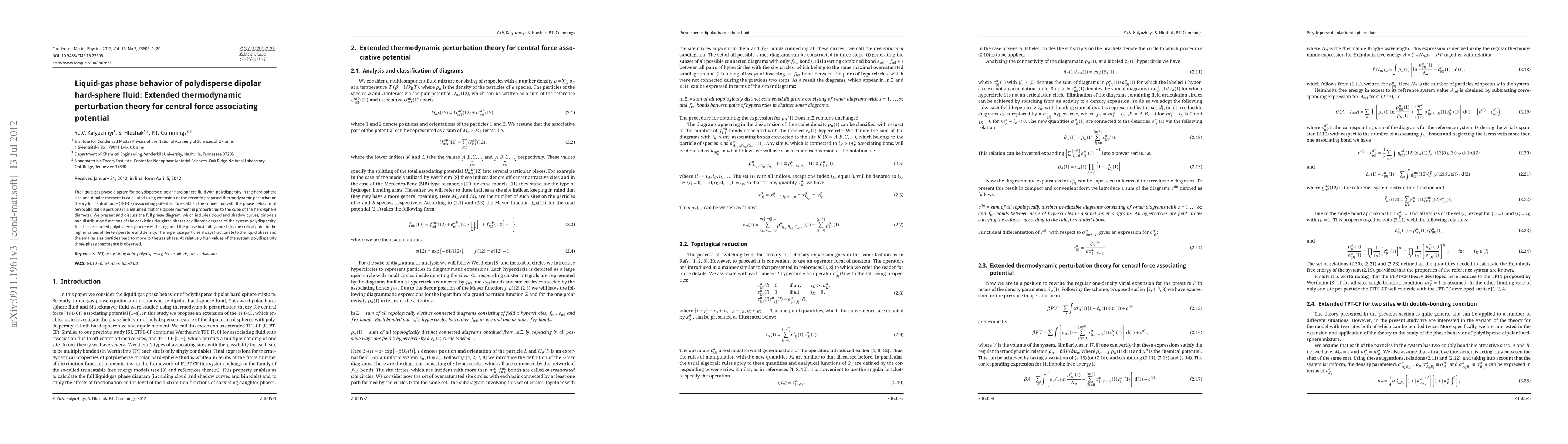This paper uses extended thermodynamic perturbation theory to analyze the liquid-gas phase behavior of polydisperse dipolar hard-sphere fluids, revealing that polydispersity increases phase instability and shifts critical points to higher temperatures and densities. The study also observes three-phase coexistence at high polydispersity levels.