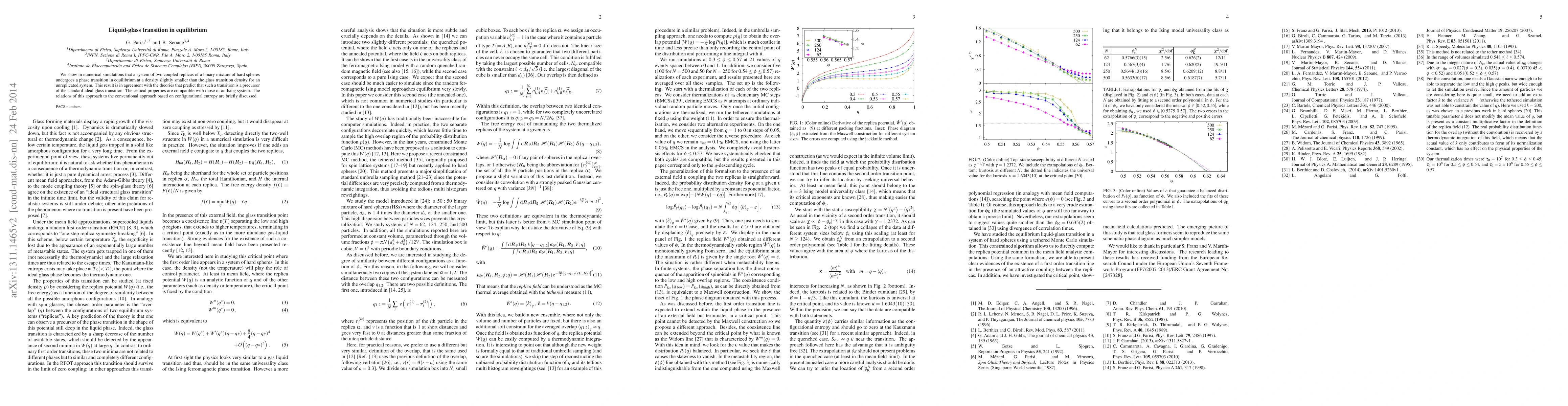 We show in numerical simulations that a system of two coupled replicas of a binary mixture of hard spheres undergoes a phase transition in equilibrium at a density slightly smaller than the glass transition density for an unreplicated system. This result is in agreement with the theories that predict that such a transition is a precursor of the standard ideal glass transition. The critical properties are compatible with those of an Ising system. The relations of this approach to the conventional approach based on configurational entropy are briefly discussed.