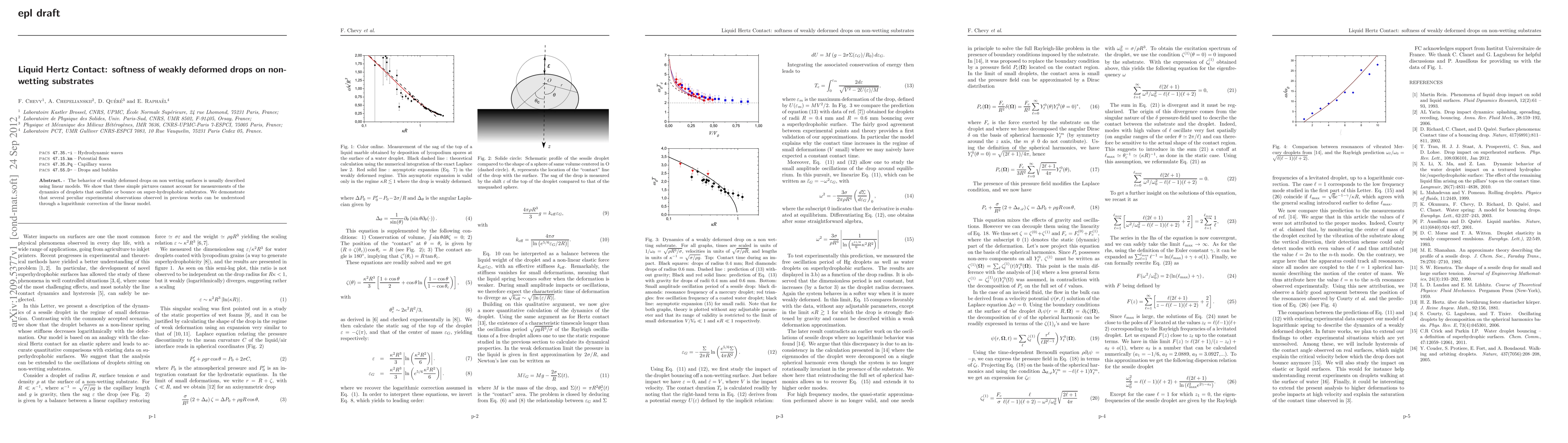 This research challenges linear models for describing weakly deformed drops on non-wetting surfaces, proposing a logarithmic correction to better explain droplet dynamics on super-hydrophobic substrates, including oscillation and bouncing behaviors.