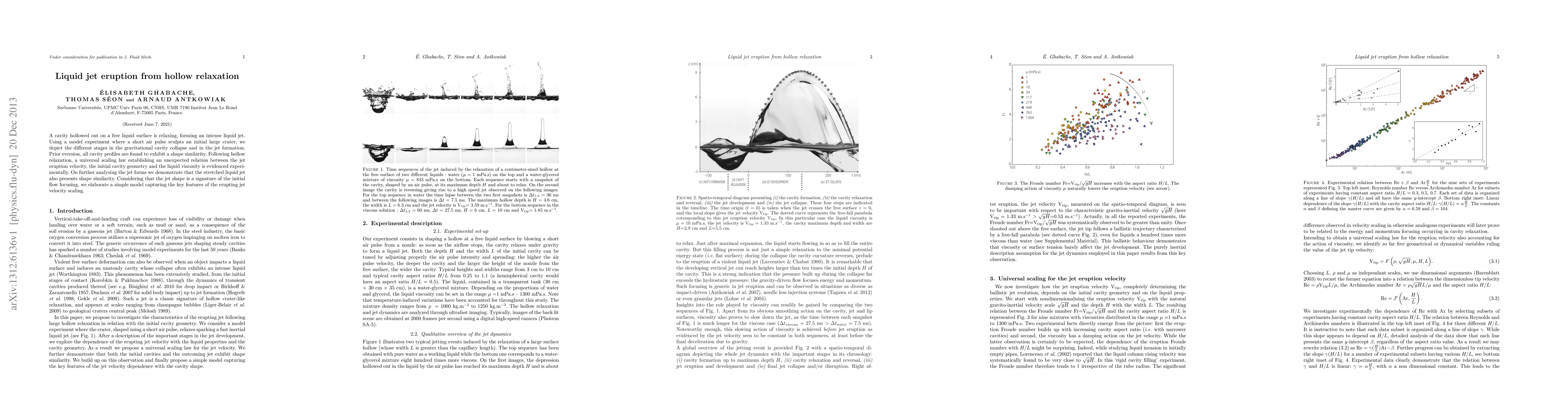 A cavity hollowed out on a free liquid surface is relaxing, forming an intense liquid jet. Using a model experiment where a short air pulse sculpts an initial large crater, we depict the different stages in the gravitational cavity collapse and in the jet formation. Prior eversion, all cavity profiles are found to exhibit a shape similarity. Following hollow relaxation, a universal scaling law establishing an unexpected relation between the jet eruption velocity, the initial cavity geometry and the liquid viscosity is evidenced experimentally. On further analysing the jet forms we demonstrate that the stretched liquid jet also presents shape similarity. Considering that the jet shape is a signature of the initial flow focusing, we elaborate a simple model capturing the key features of the erupting jet velocity scaling.