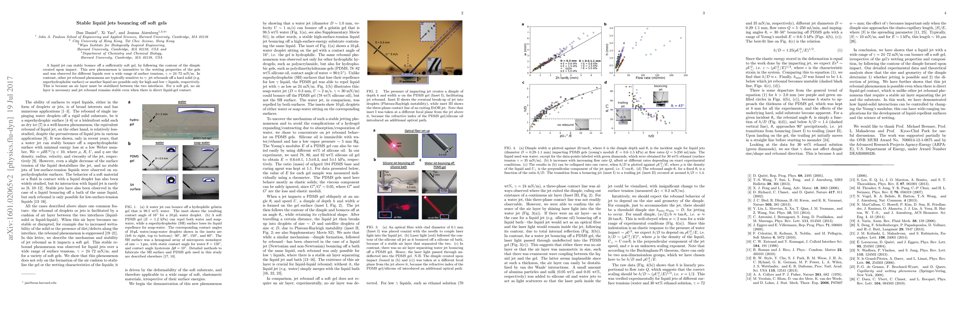 A liquid jet can bounce off a soft gel without air layer stabilization, unlike on hard surfaces or with high/low surface tension liquids.