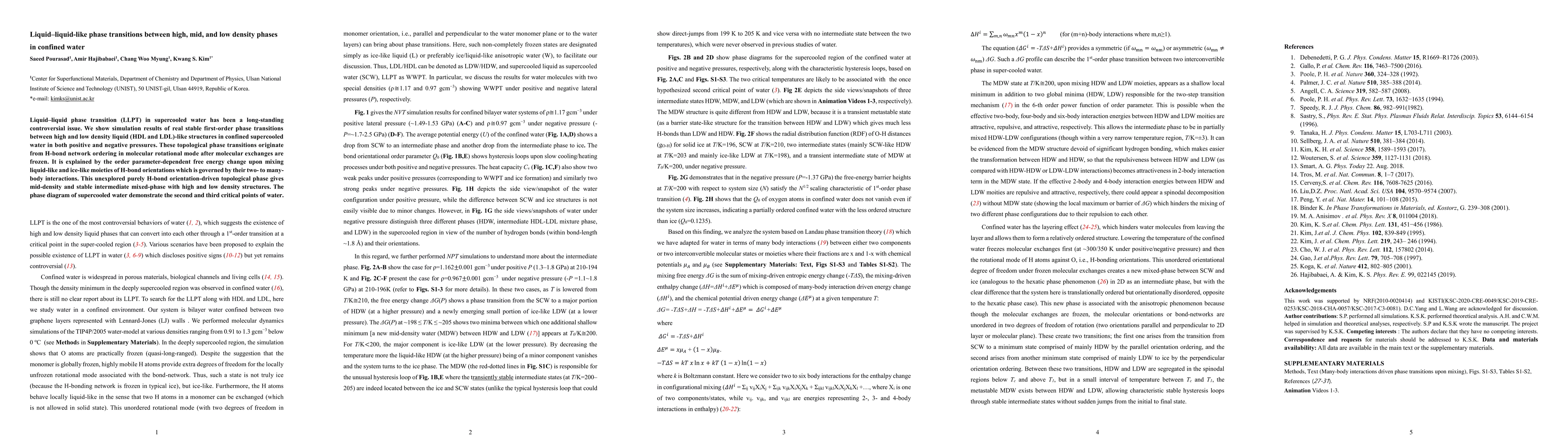 This research demonstrates stable first-order phase transitions between high and low density liquid-like phases in confined supercooled water, revealing a purely hydrogen bond orientation-driven topological phase transition. The study identifies mid-density intermediate mixed-phases and confirms the existence of second and third critical points in the phase diagram of supercooled water.