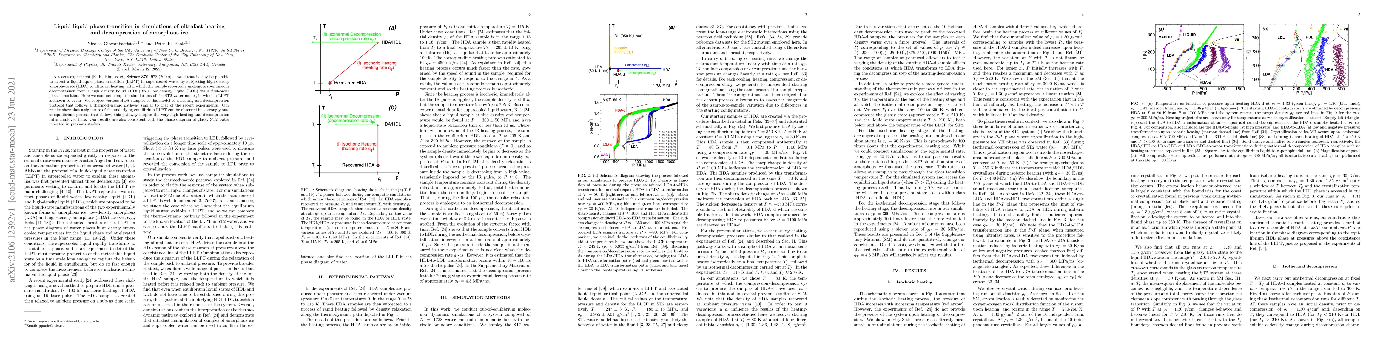 Researchers used computer simulations to study ultrafast heating of amorphous ice, finding a signature of liquid-liquid phase transition that occurs during this process despite high temperatures. The results support previous studies on the phase diagram of glassy water.